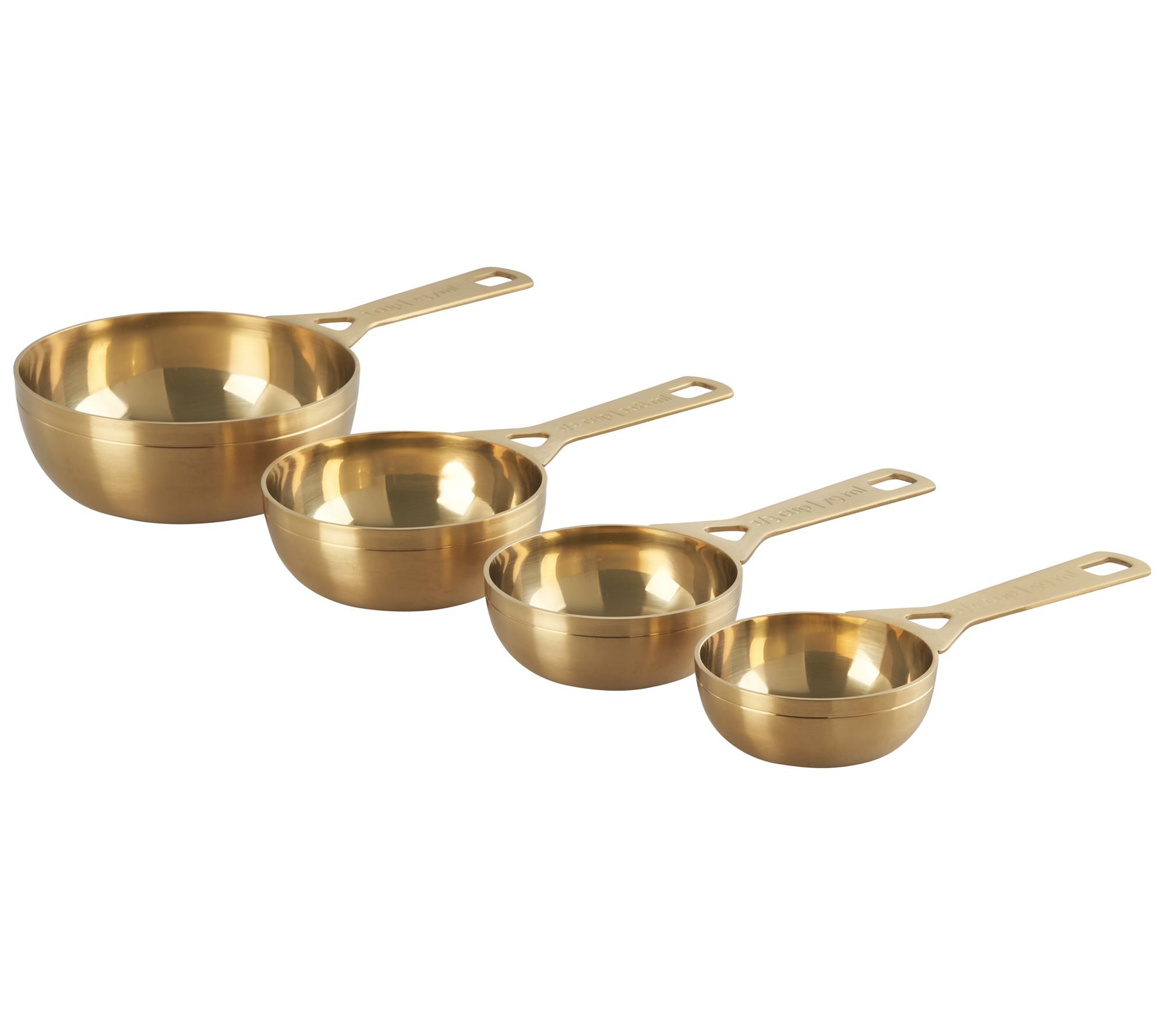 Bring a touch of elegance to your cooking routine with this set of goldtone measuring cups. From Le Creuset.