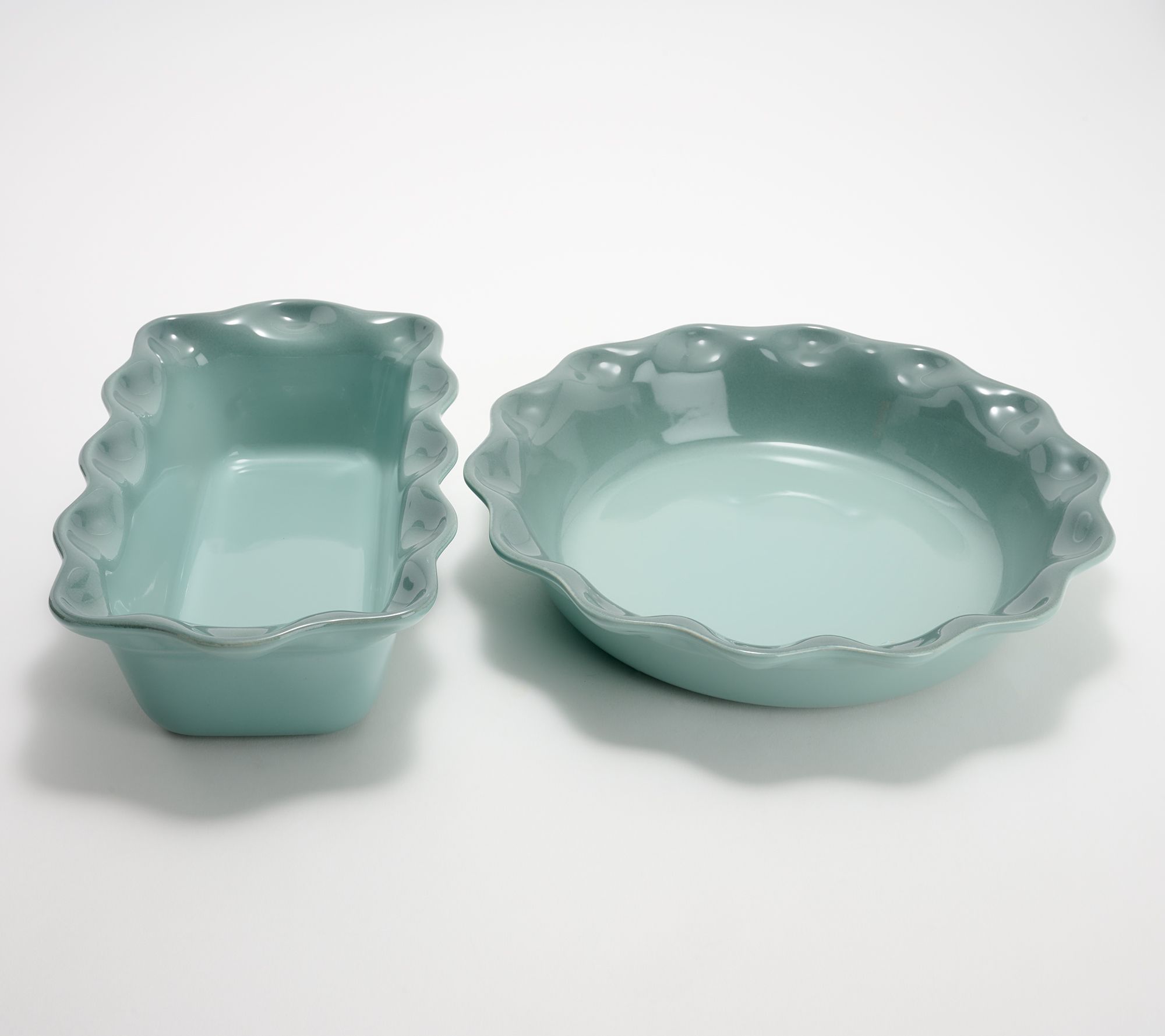 Includes fluted pie plate and loaf pan