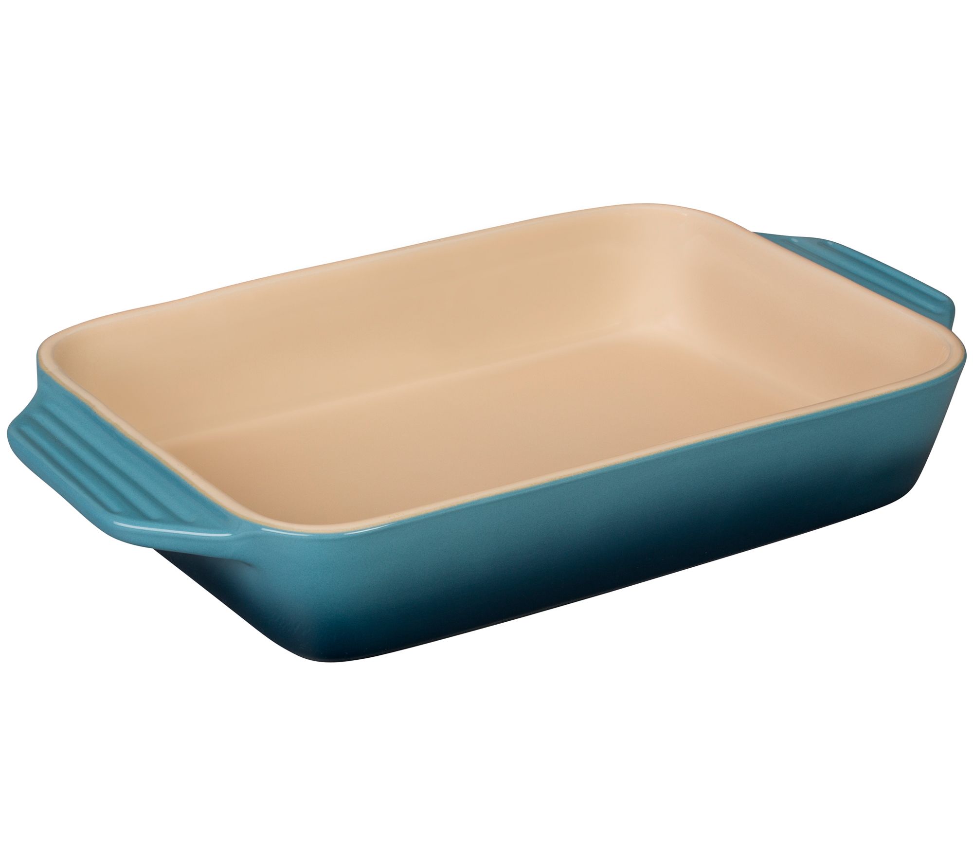 A successful supper starts here. This signature rectangular dish features deep sidewalls that create space for marinating, breading, and creating casserole fillings. The sturdy stoneware construction helps maintain hot and cold temperatures for serving. From Le Creuset.