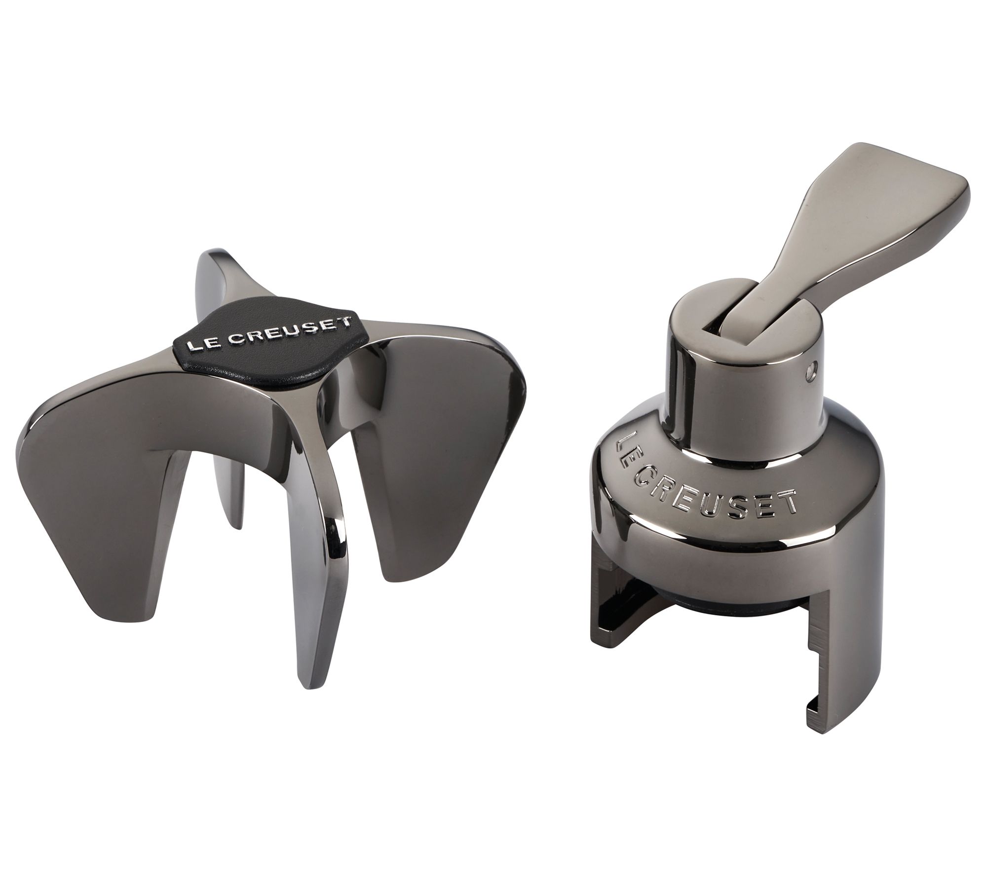Cheers to enjoying a stylish bottle of bubbly with friends when you have this two-piece set, featuring a unique cross-shaped opener and a stopper to lock in the fizz. From Le Creuset.