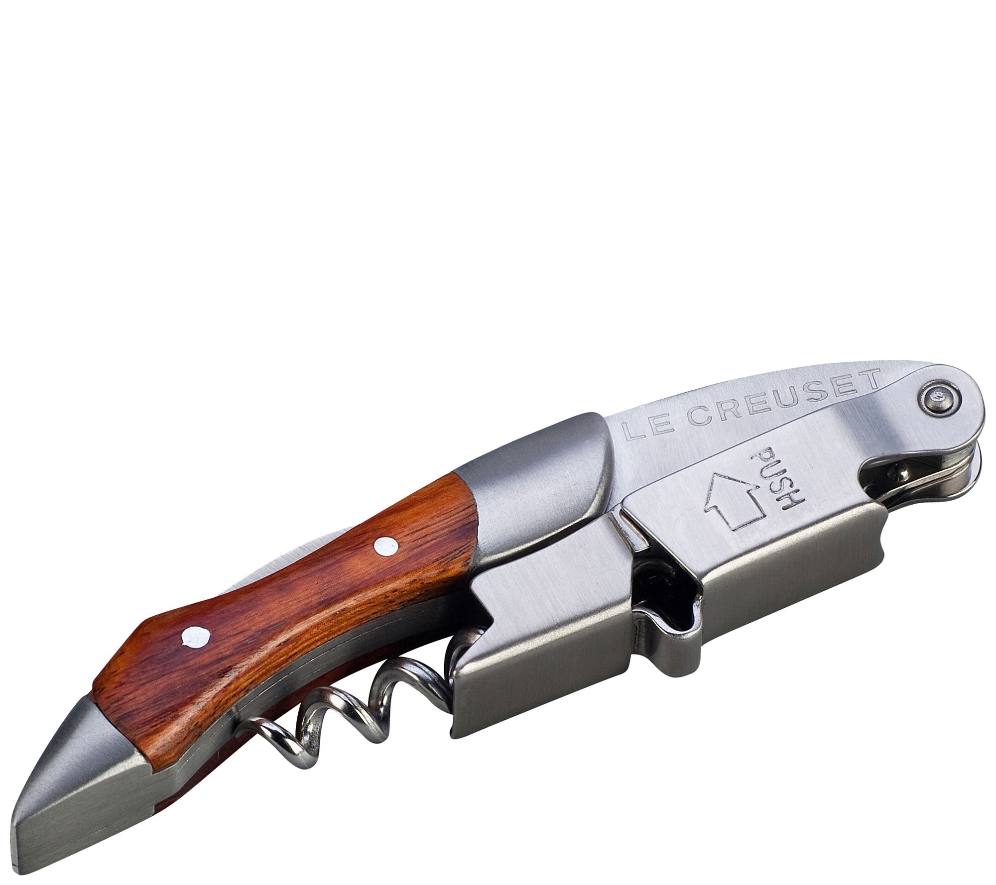 This petite corkscrew is all you need for a BYOB get-together with the built-in foil cutting blade and bottle opener. From Le Creuset.