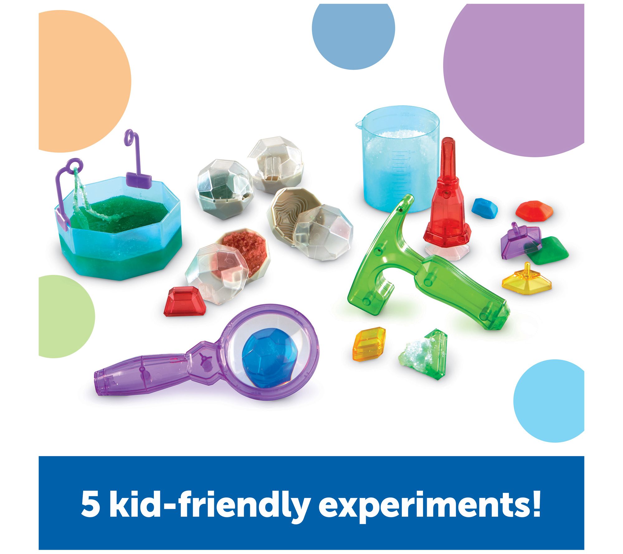Learn the science of sparkling gems with this lab kit, featuring five fun experiments that teach kids all about the wondrous world of geodes, crystals, and more! From Learning Resources.