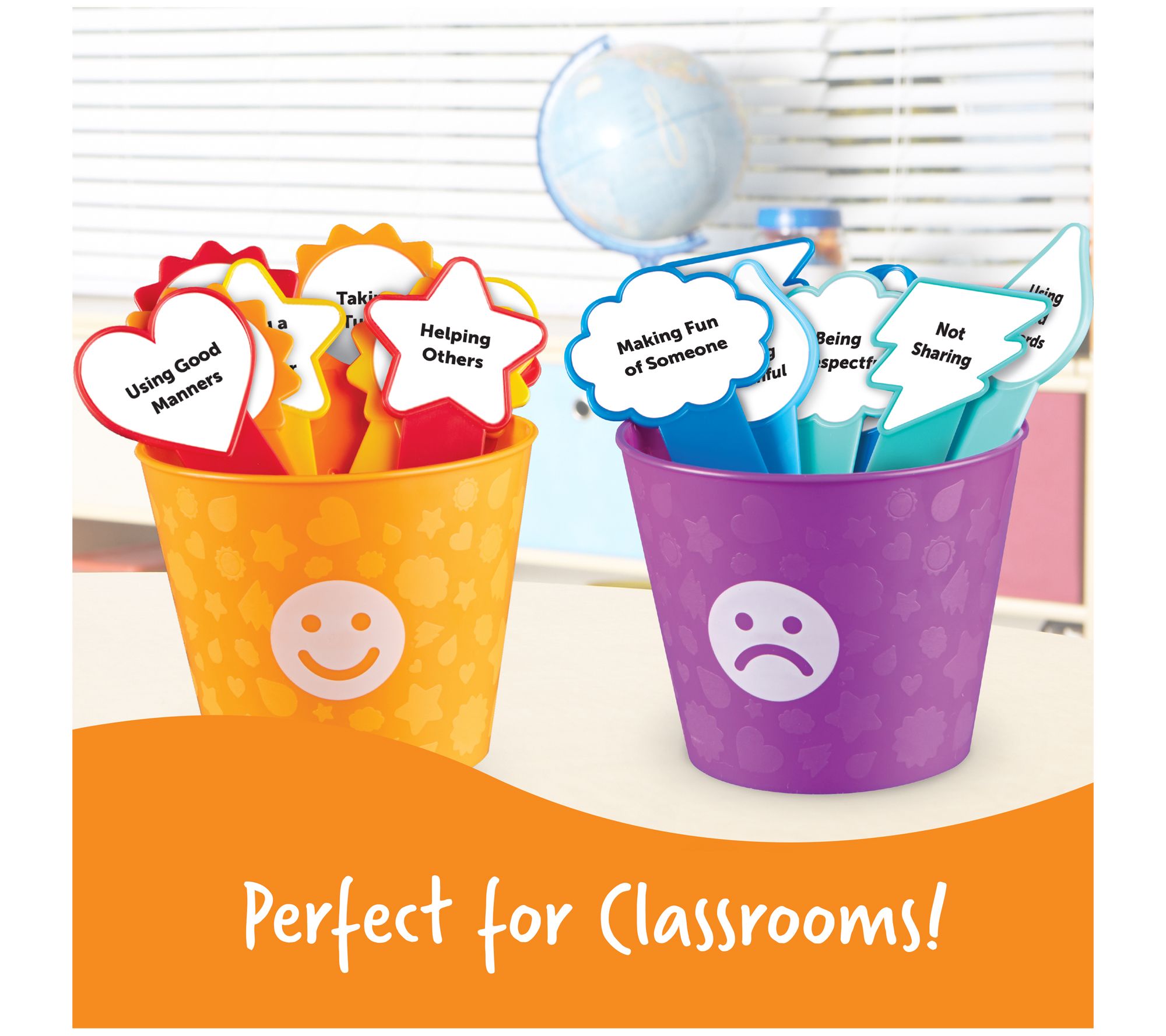• Includes two buckets, 30 behavior sticks, and two sticker sheets