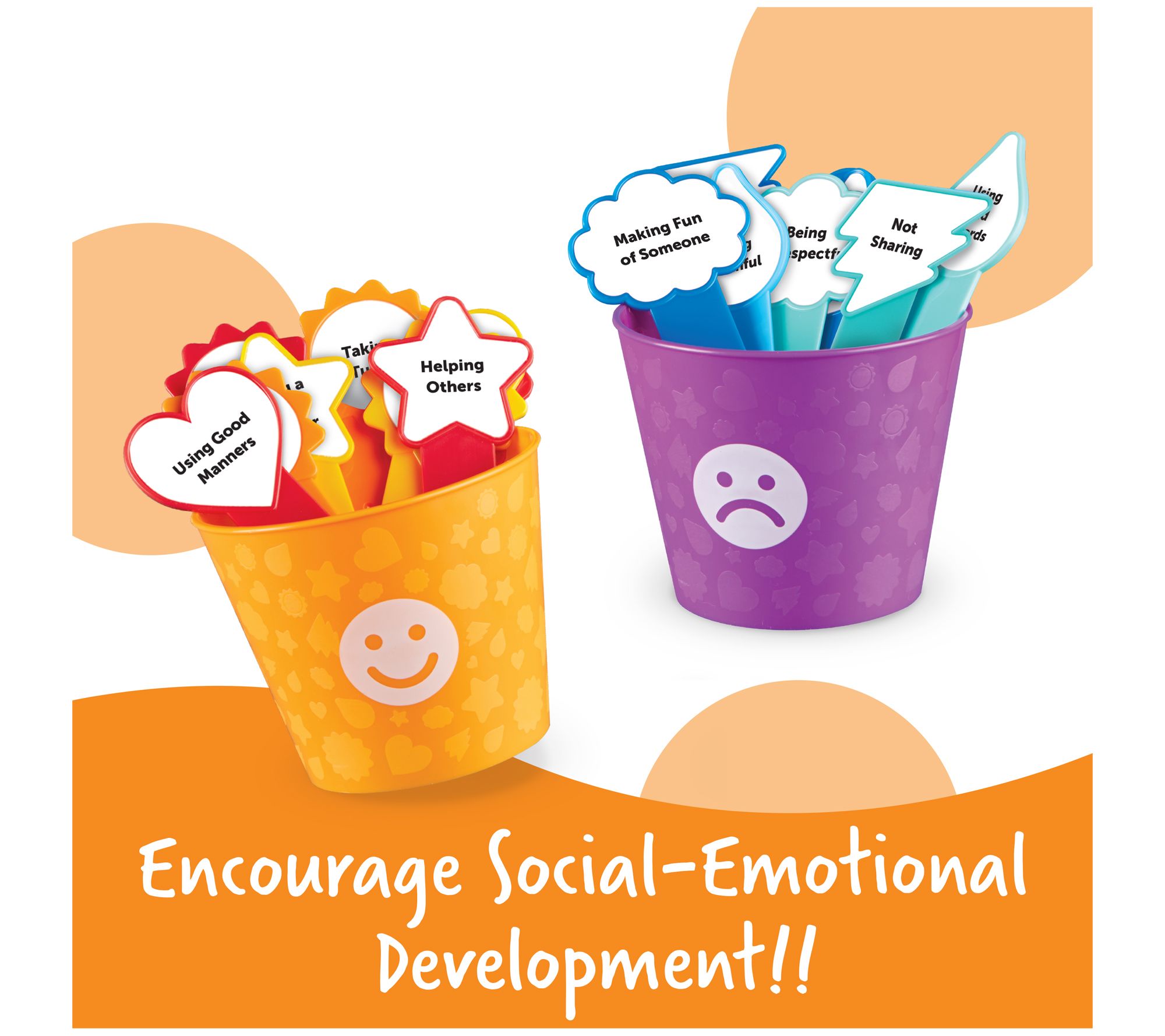 Whether they're in the classroom or homeschooling, this set teaches students to fill their day with kindness, attentiveness, and other positive social-emotional skills with these Good Behavior Buckets. From Learning Resources.