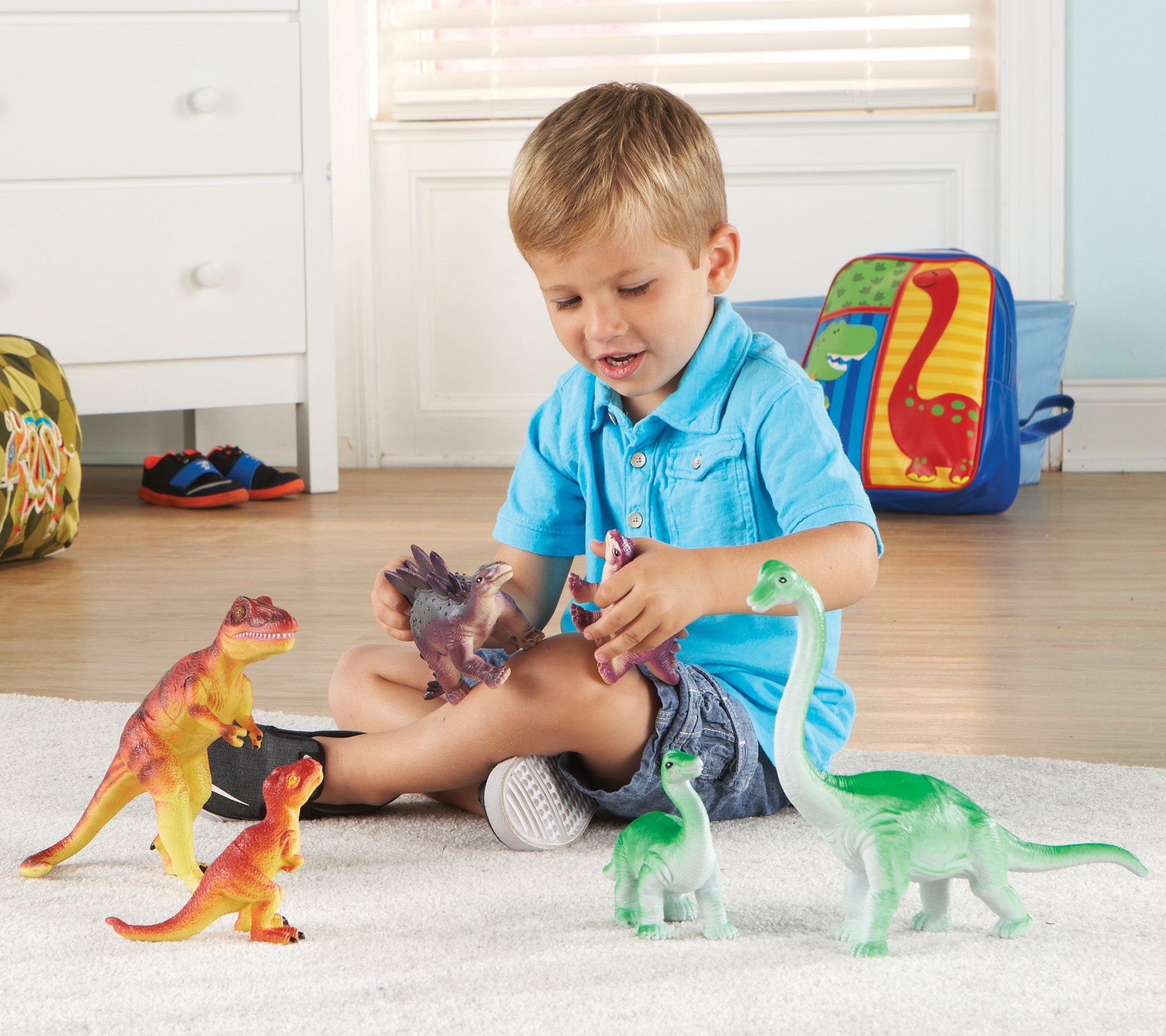 Travel back in time with your little one with the Learning Resources jumbo dinosaurs. The momma and baby pairs set the stage for imaginary independent play and fun role reversal when you pretend to be the baby and she parents you! From Learning Resources.