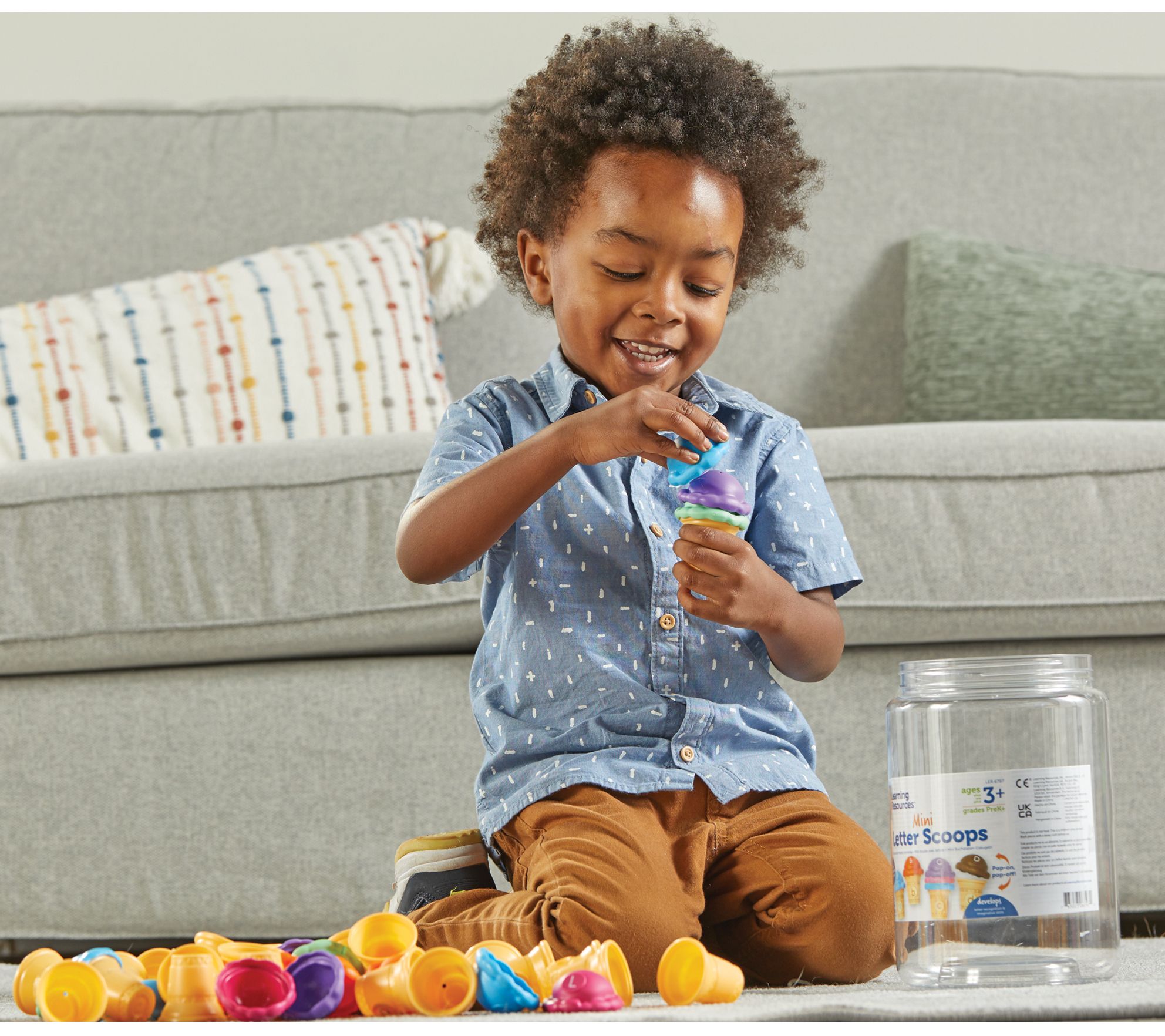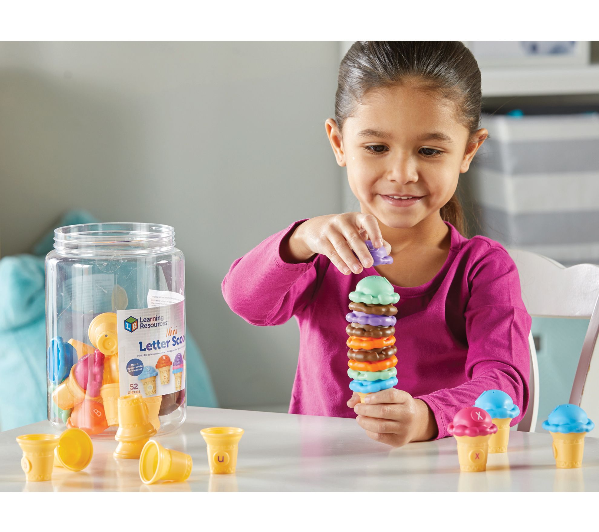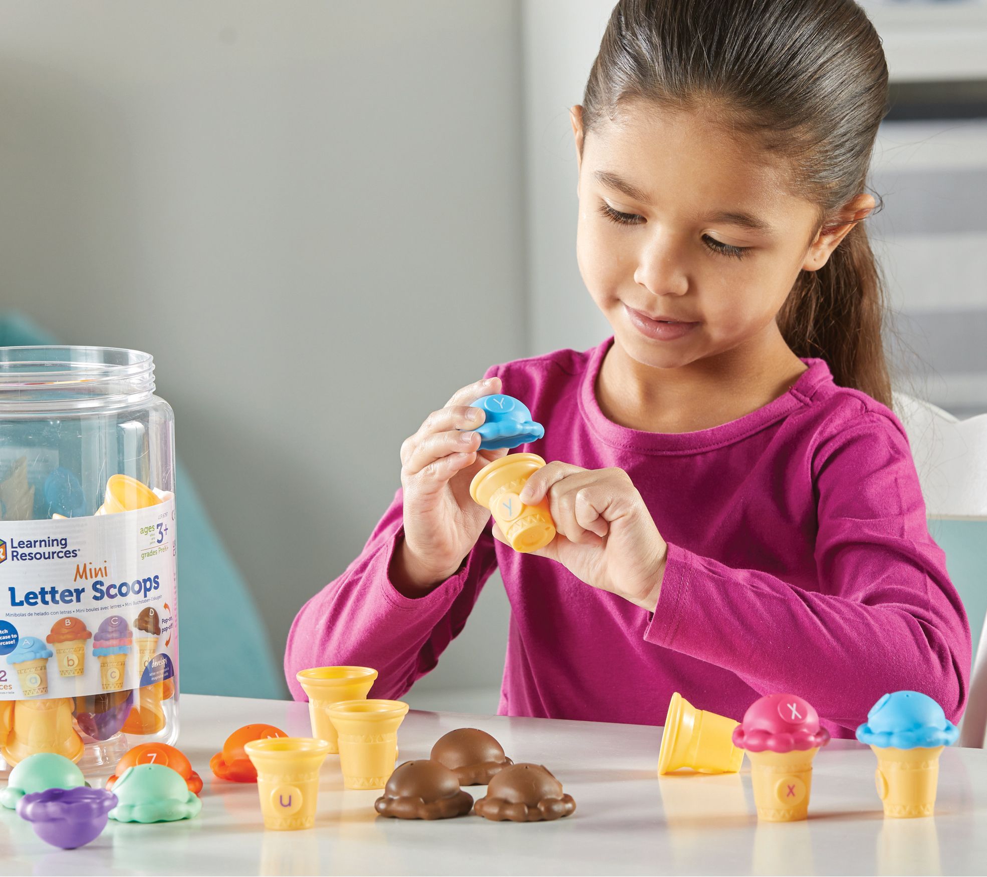 Serve up a scoop of preschool letter skills with the Learning Resources mini letter scoops toy set! Kids will enjoy matching uppercase and lowercase letters on these ice cream-themed toys, boosting their letter recognition while having loads of fun. Plus, the pop-on, pop-off ice cream toppers help develop fine motor skills. From Learning Resources.