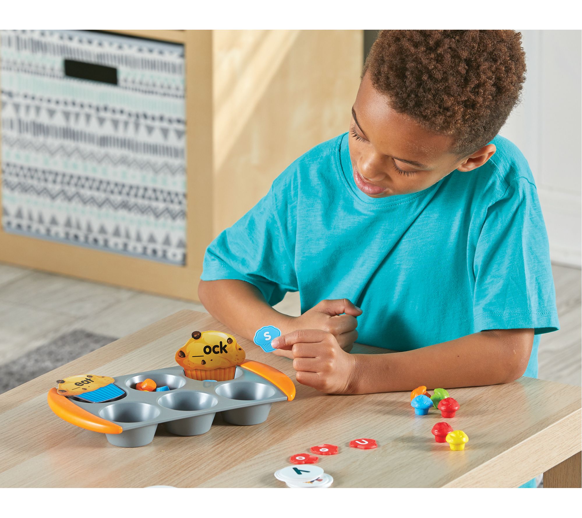 Bake up a fresh batch of phonics skills with the Learning Resources muffin tin letters & sounds set. This educational toy introduces kids to essential phonics skills like letter identification, beginning sounds, and rhyming through fun, hands-on activities. From Learning Resources.