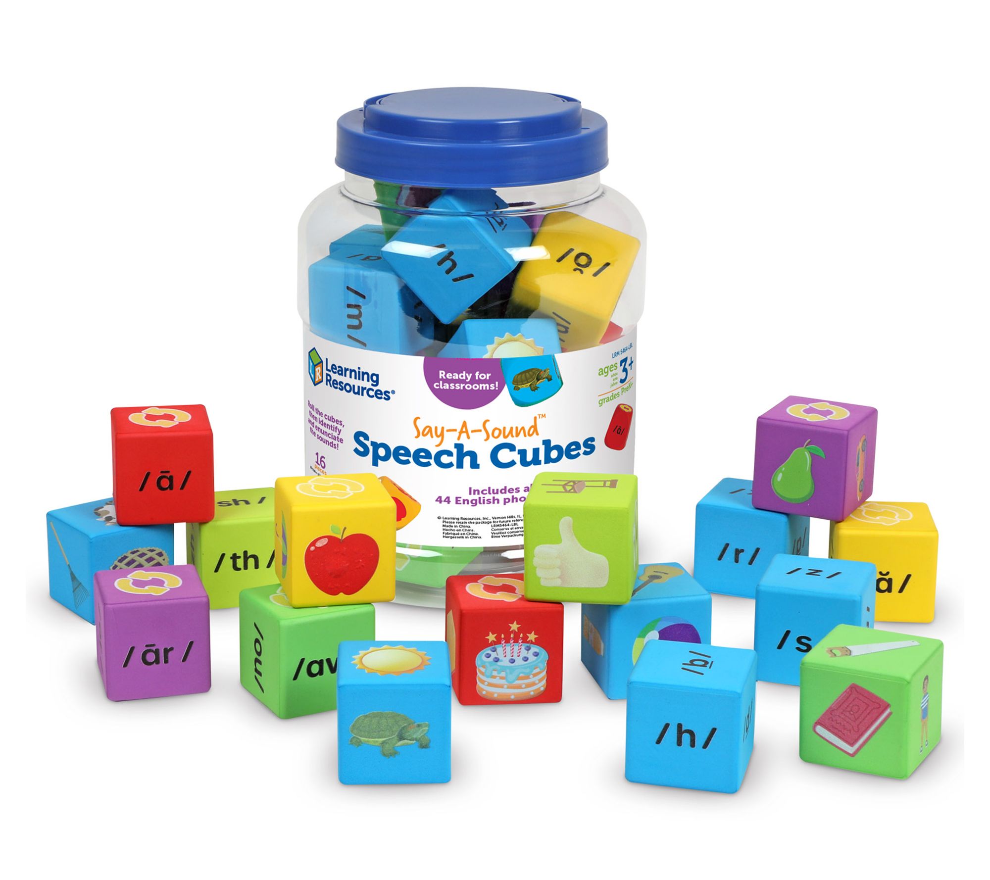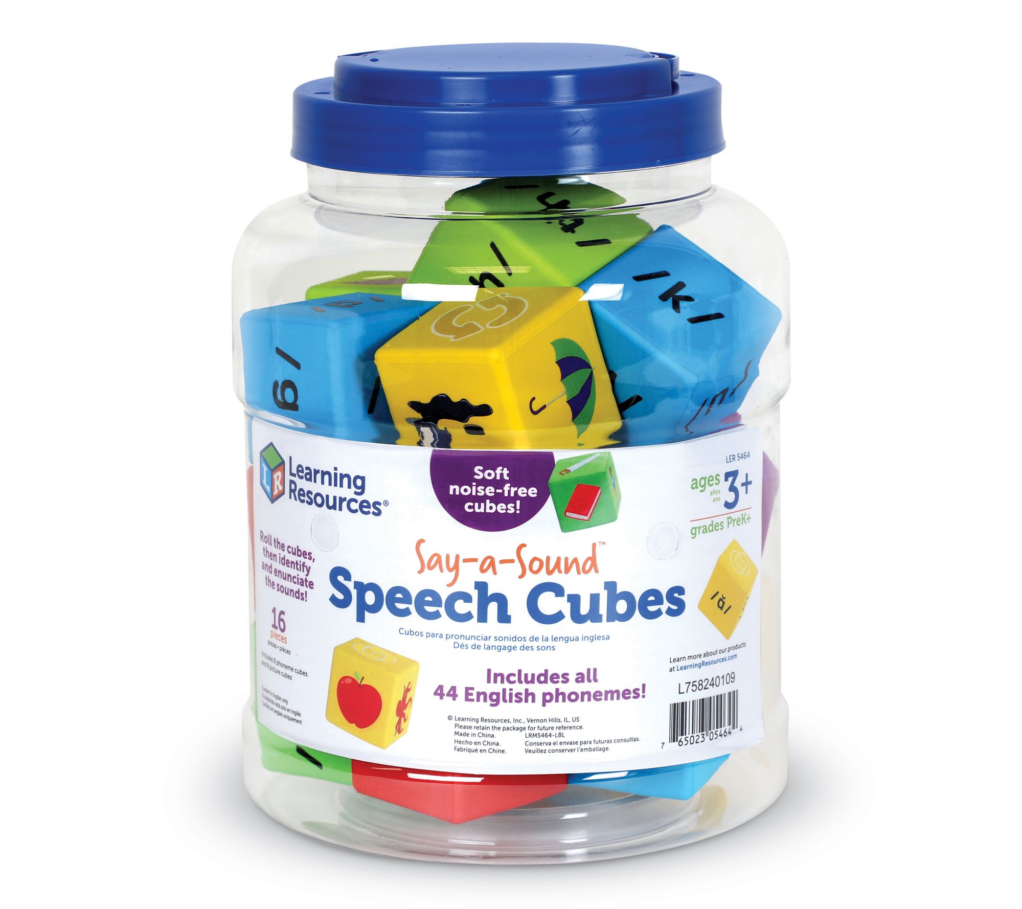 Boost early literacy skills with a dash of fun using these vibrant sound cubes. As children roll the foam cubes, they embark on an exciting journey of language exploration, effortlessly mastering phonemic awareness. The engaging design encourages identification and pronunciation of sounds while expanding vocabulary. With a handy storage bucket, it's a breeze to keep everything tidy after playtime. From Learning Resources.