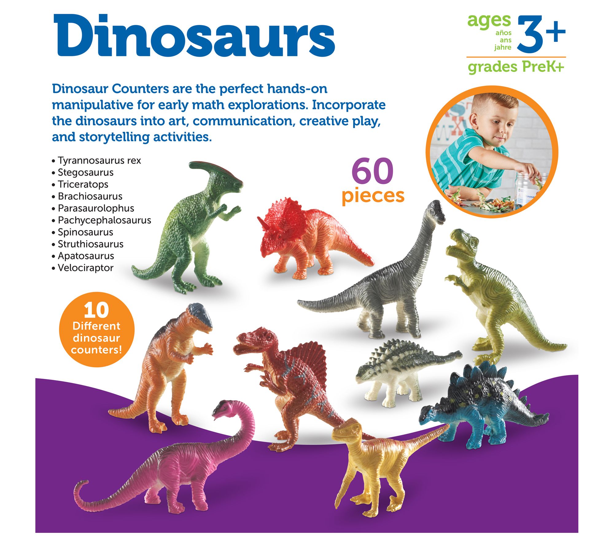 Count on some prehistoric fun with this dinosaur counter set, designed to help children as young as three years old practice basic counting, sorting, and pattern skills. From Learning Resources.