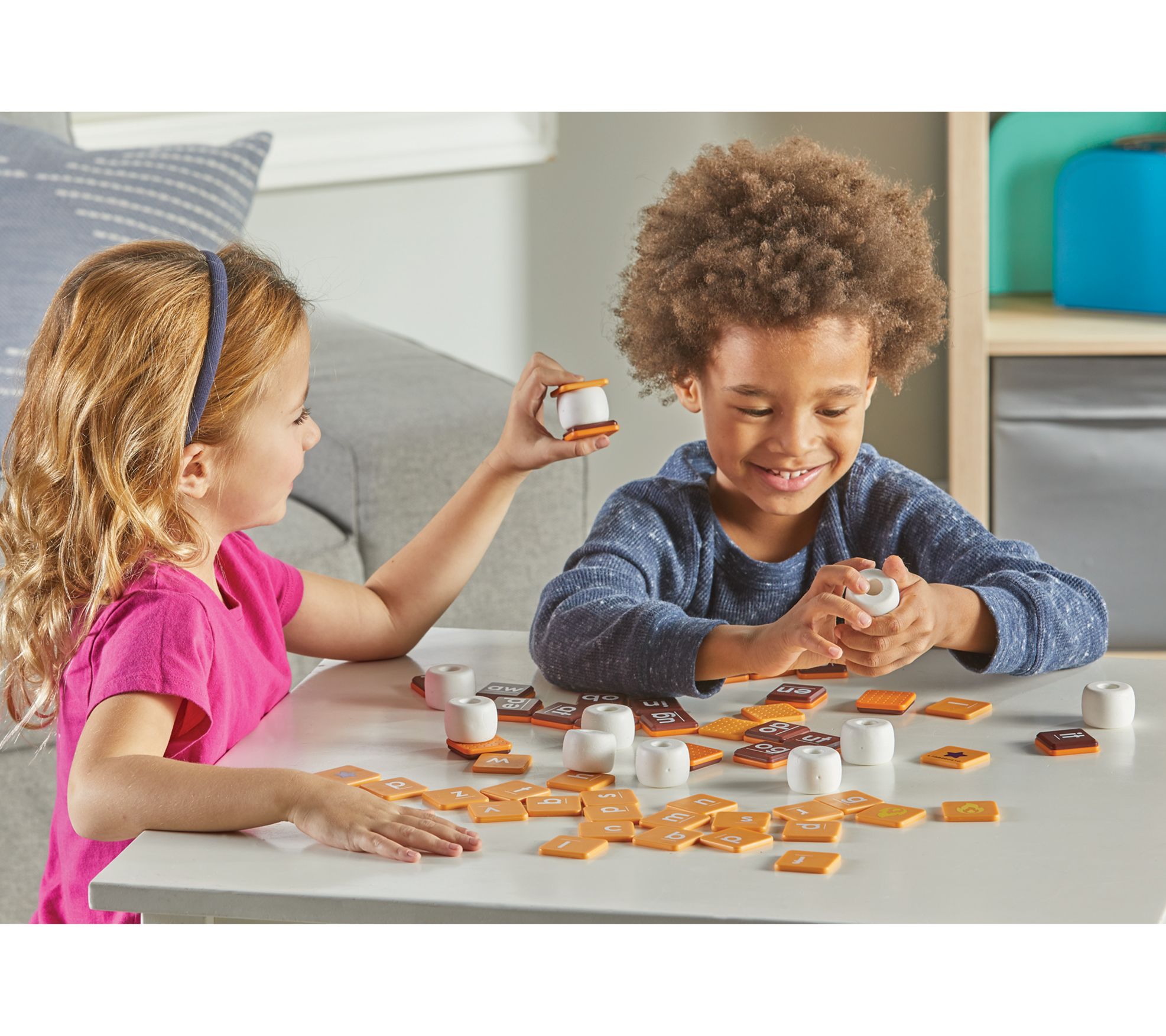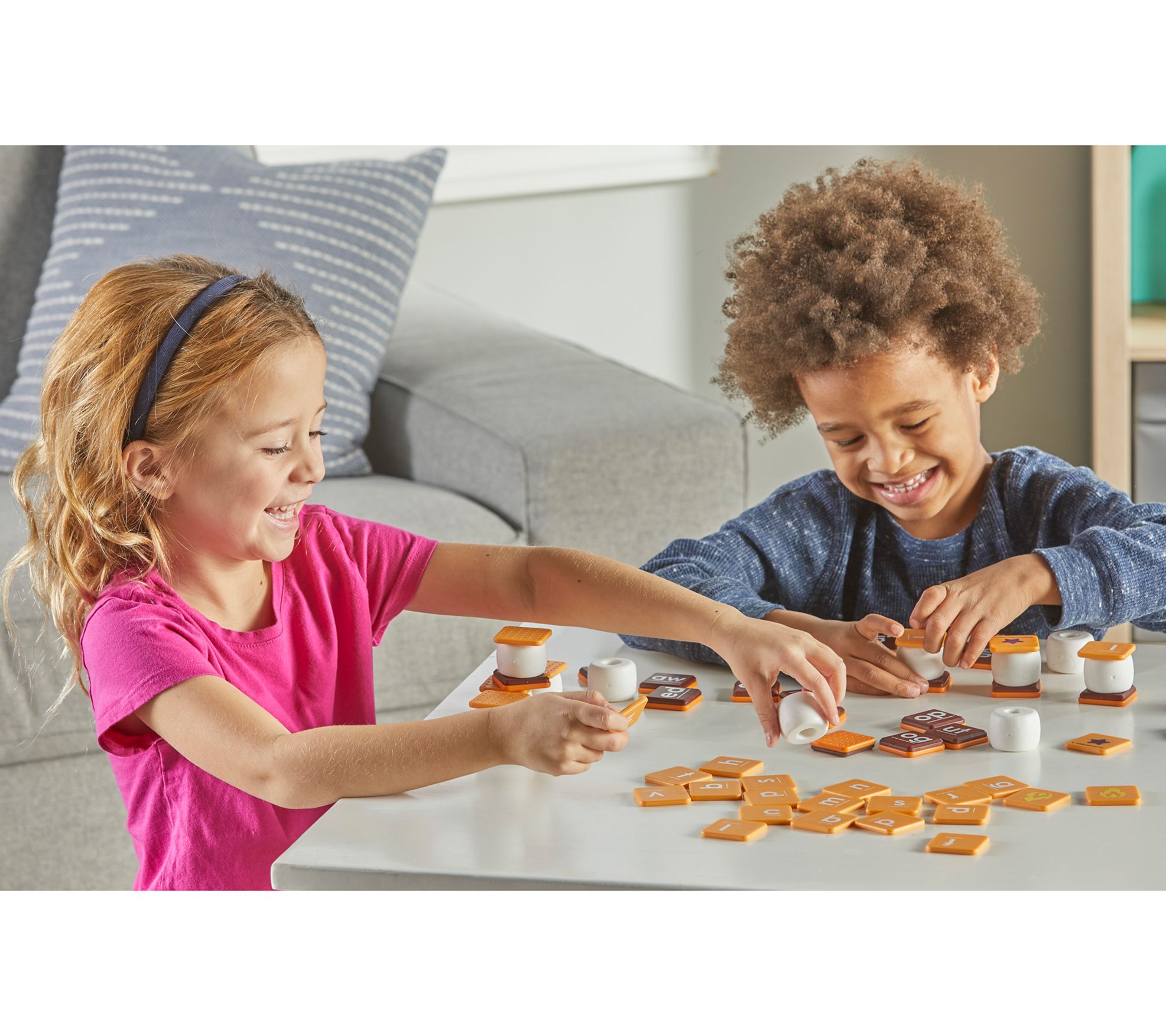 Unearth a delightful twist to learning with the Stack N Spell S'Mores game. Perfect for young spellers, this engaging activity combines play with education. Players race to gather graham cracker and chocolate tiles to craft consonant-vowel-consonant words, then crown their creation with a squishy marshmallow before smooshing it triumphantly. With levels tailored for varying ages and skills, it's a sweet challenge for everyone involved. From Learning Resources.