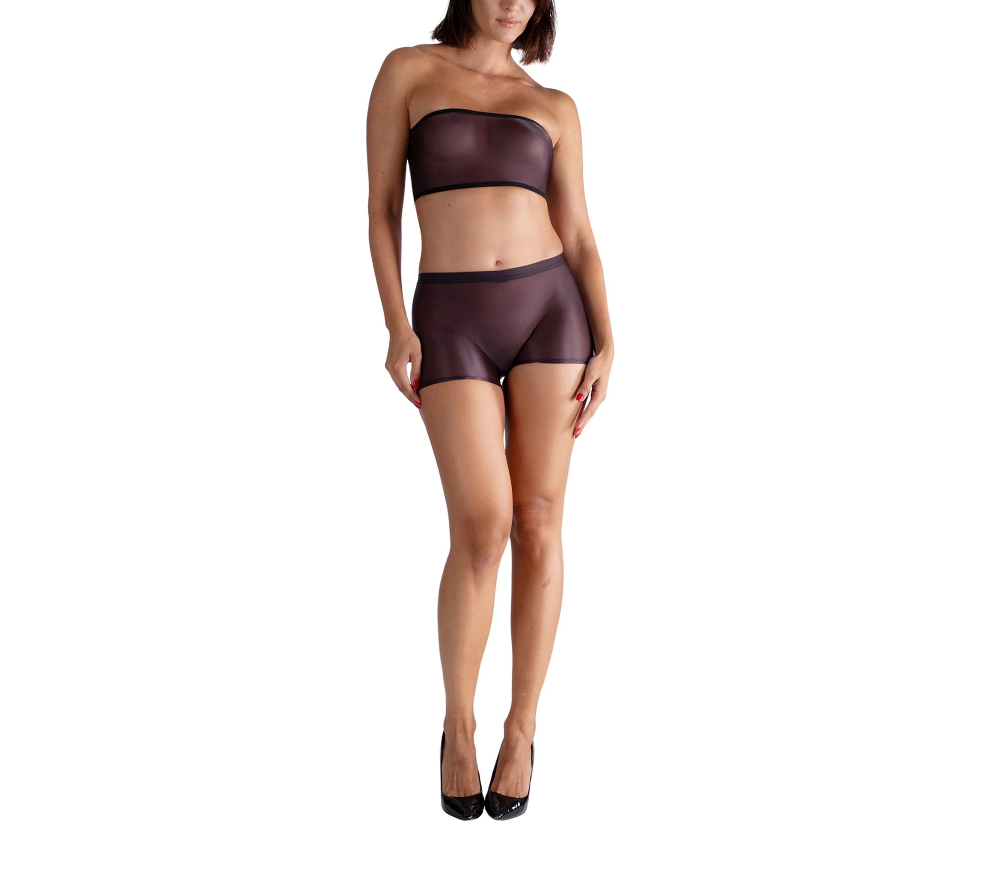 Add a radiant touch to your wardrobe with these boy short pantyhose tights, designed to blend playful style and polished shine. Their mid-rise silhouette and structure cut is ideal layered under skirts or dresses, or worn solo for a daring statement. From LECHERY.