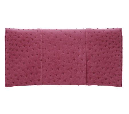 Timeless, ageless, seasonless. This super-chic envelope clutch is done with a posh ostrich-textured print. Choose the look that suits you best, be it a bold color or a classic neutral. From Lee Sands.