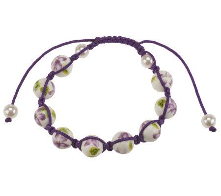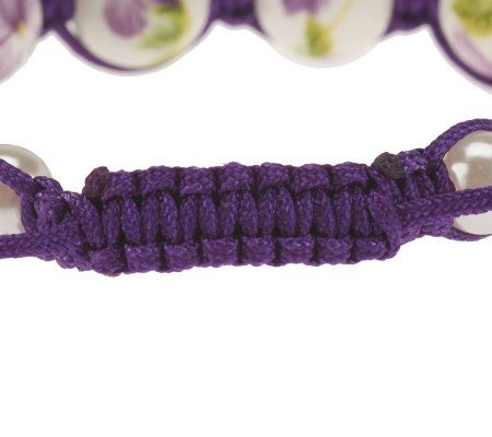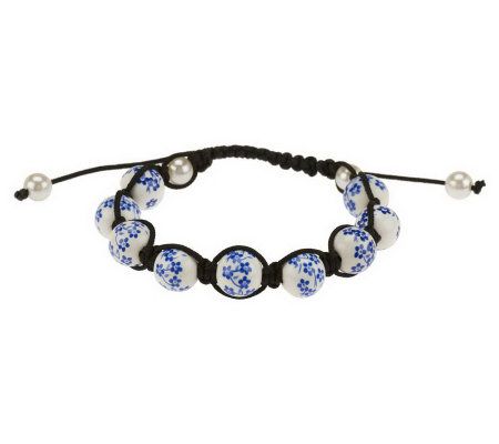 A childhood favorite--all grown up! White ceramic beads with flower accents are knotted along this lovely macrame bracelet, with white round simulated pearls at each end of the adjustable cord. From Lee Sands.