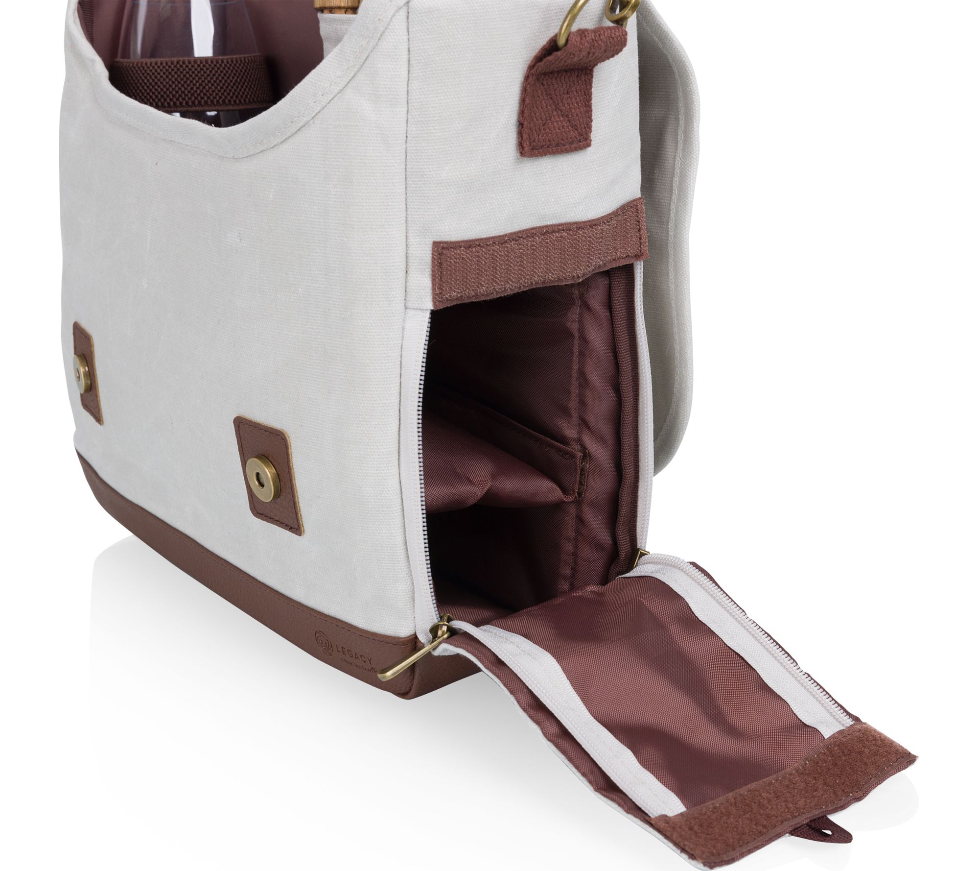 Whether you're planning a picnic in the park or an afternoon at an outdoor concert, this Legacy Adventure Wine Tote Bag keeps everything you need neatly organized and ready to carry. Featuring an insulated cooler, folding acacia snack table, two stemless wine glasses, and handy accessories, your wine and snacks stay stylishly presented wherever your adventure leads. From Legacy.