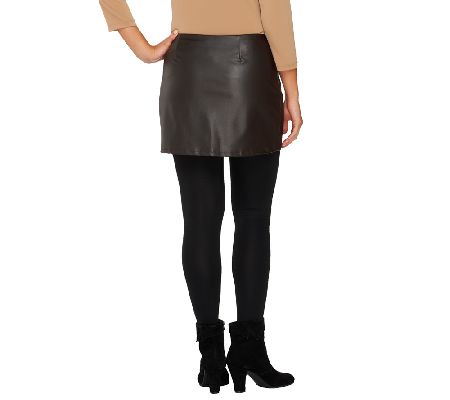 Two cool. Pulling off leggings couldn't be easier or more fun when this skirted pair from Legacy is in your wardrobe. The faux leather skirt attached to the stretchy ankle-length legging lets you wear the body-conscious style with complete confidence while looking so on trend in the process. From Legacy® Fashions.