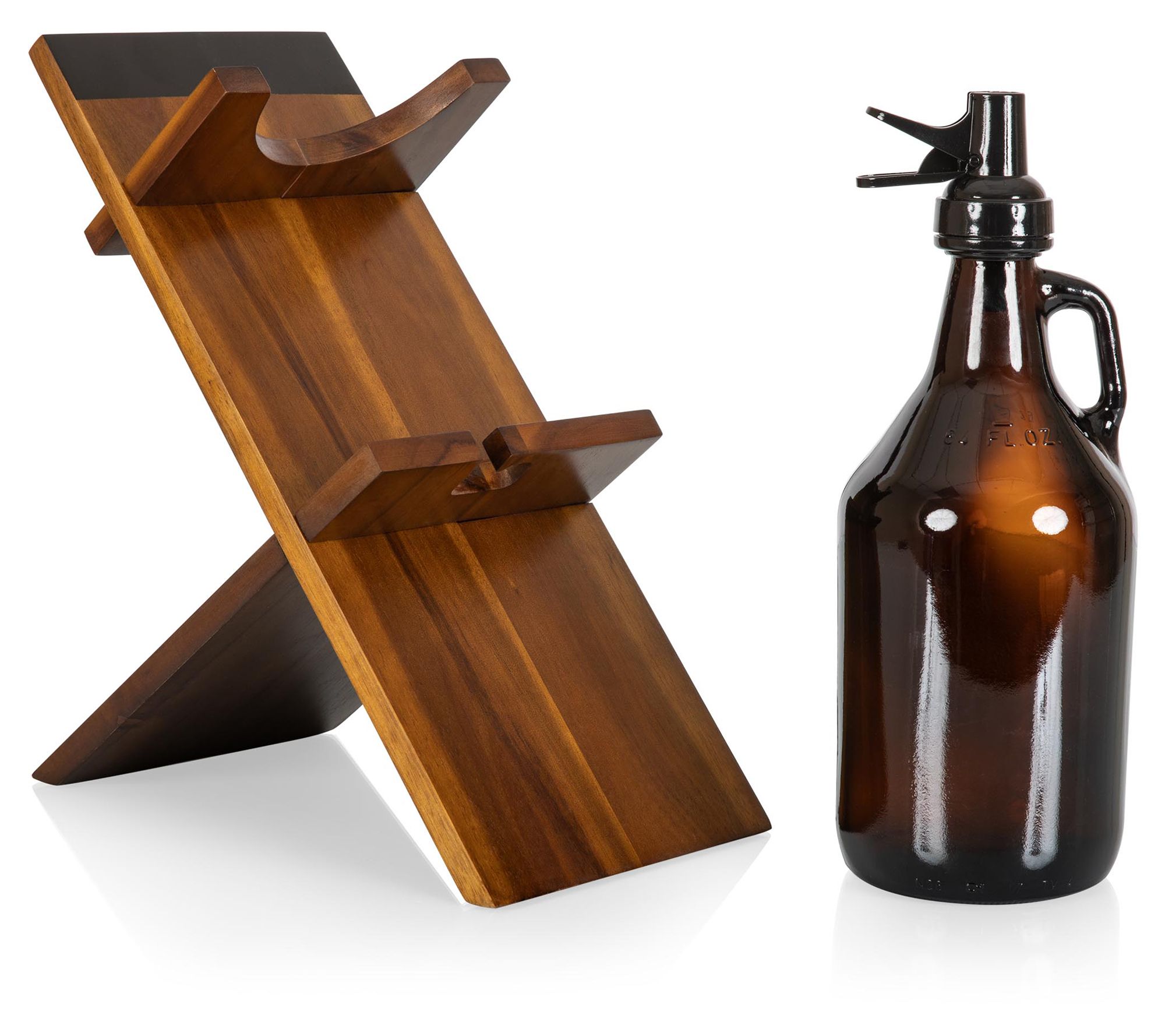 • Include 64-oz amber glass beer growler, growler tap, and wood base