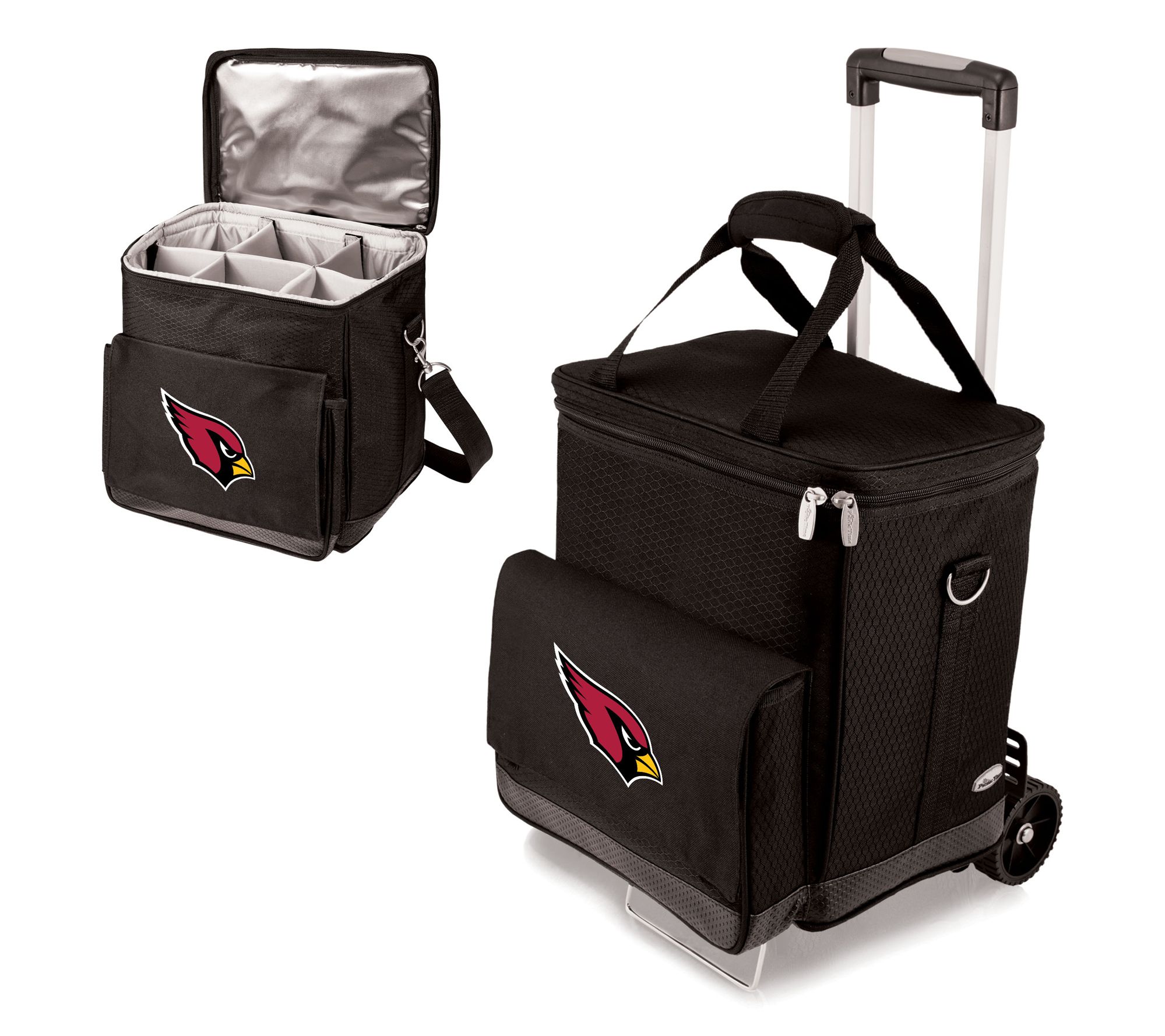Transport your favorite beverages in style with the Legacy NFL Wine Carrier Cooler Tote with Trolley. Perfect for game days, picnics, or any outdoor event, this cooler tote keeps your drinks cool and easily transportable. Enjoy the comfort and convenience of a fully-insulated interior and an adjustable shoulder strap. From Legacy.