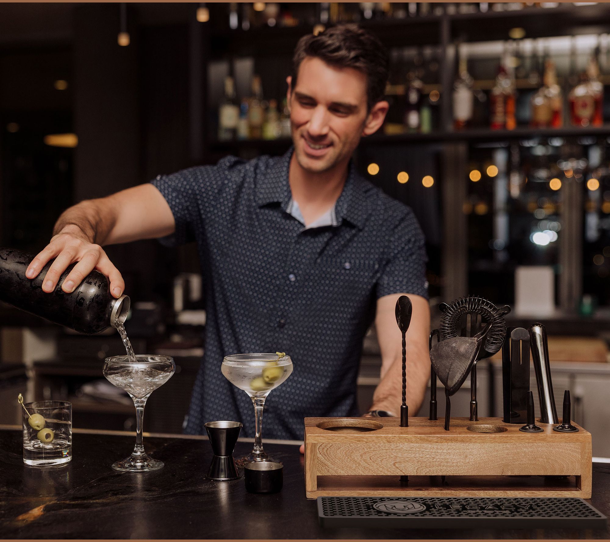 A compact cocktail tool set that gets you mixing and shaking like a pro, this beautiful kit brings a splash of sleek style to your home bar. From Legacy.