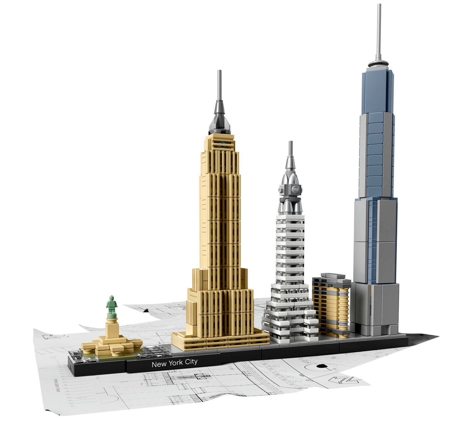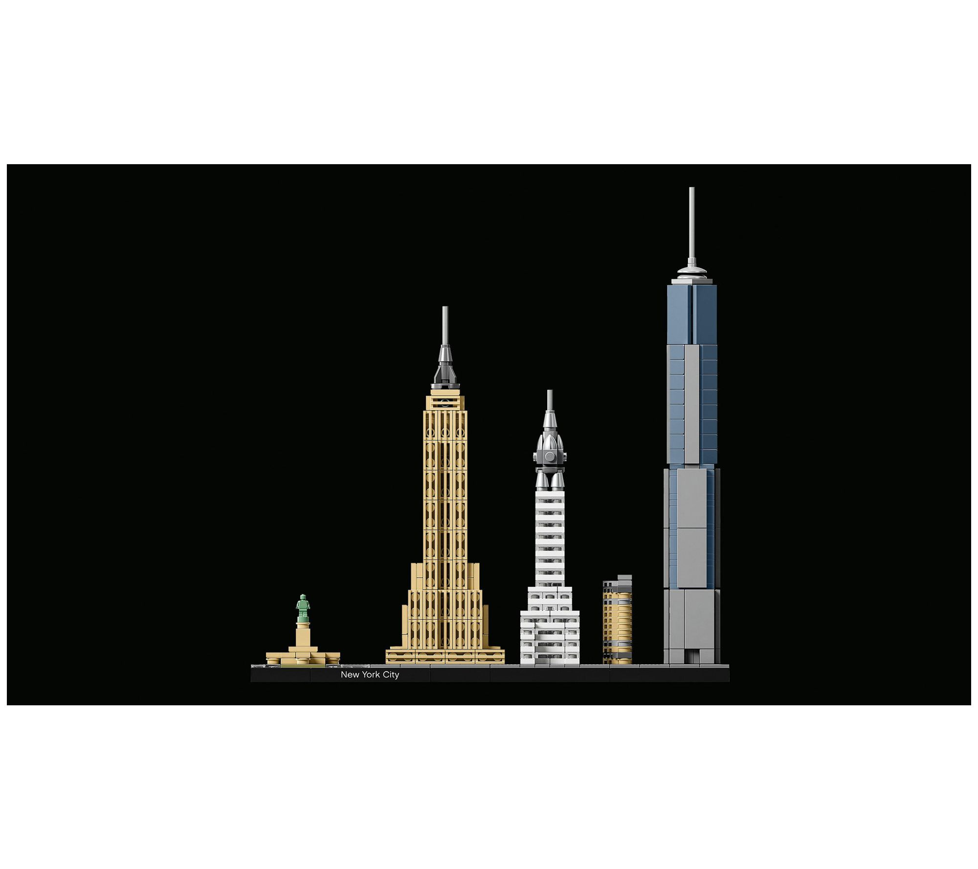 Celebrate the architectural magnificence of the Big Apple with the LEGO Architecture Skyline Collection New York City Build. This detailed set pays homage to iconic structures such as the Flatiron Building, Chrysler Building, Empire State Building, One World Trade Center, and the Statue of Liberty, scaled to offer an accurate representation of their comparative size. It's perfect for enthusiasts of travel, architecture, and history, complete with a decorative New York City nameplate to bring a piece of the city into your home or office. From LEGO.