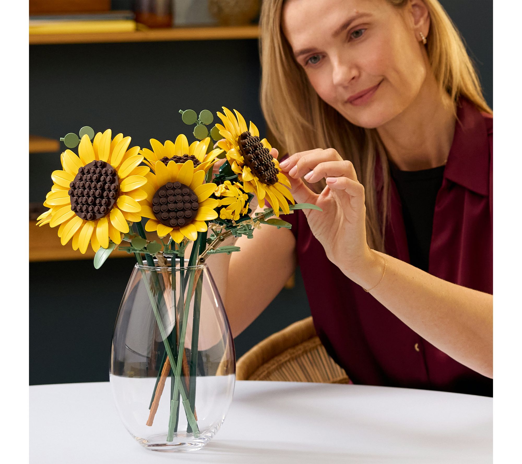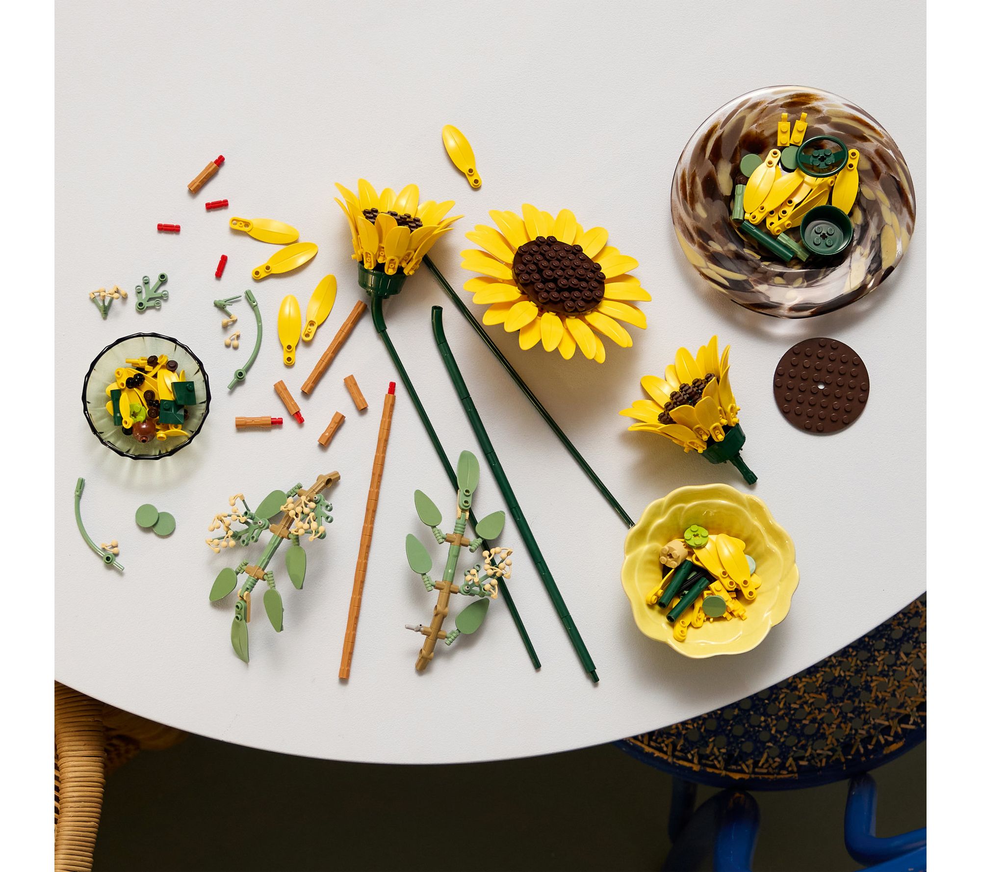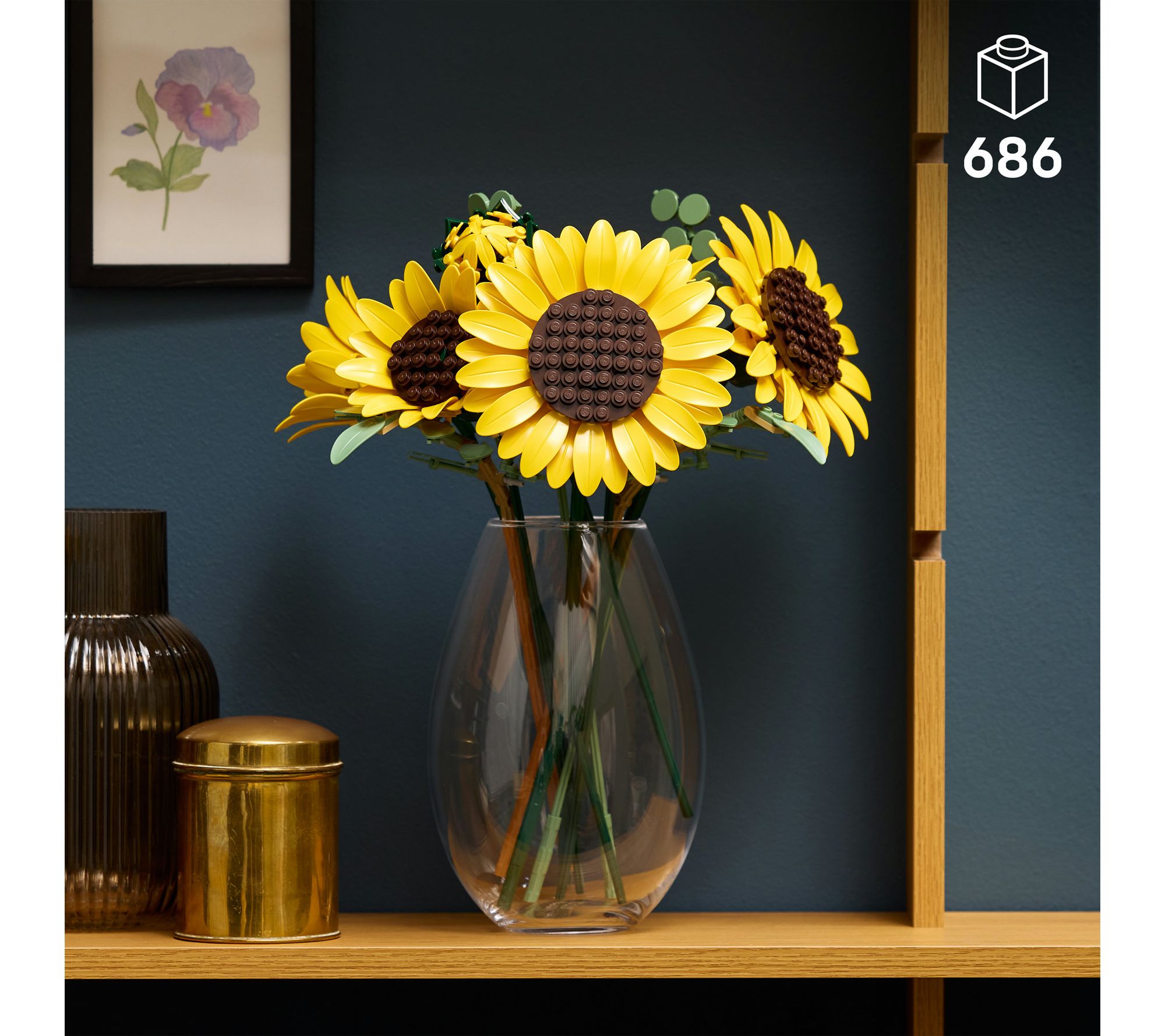 Brighten up any space with the creative charm of these blocks -- assemble a vibrant sunflower bouquet featuring a mix of buds, blooming sunflowers, and eucalyptus foliage. Whether you're adding a splash of color to your decor or gifting a nature-inspired surprise, this set invites hands-on fun and a unique floral display to enjoy. From LEGO.