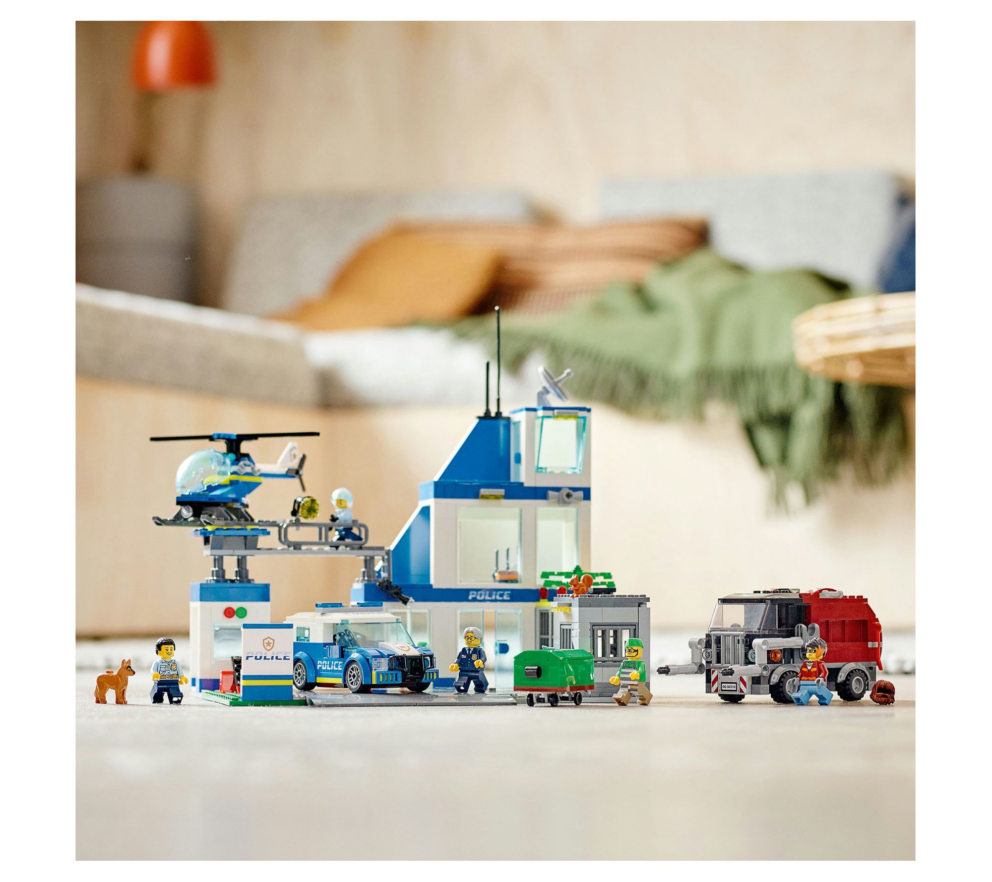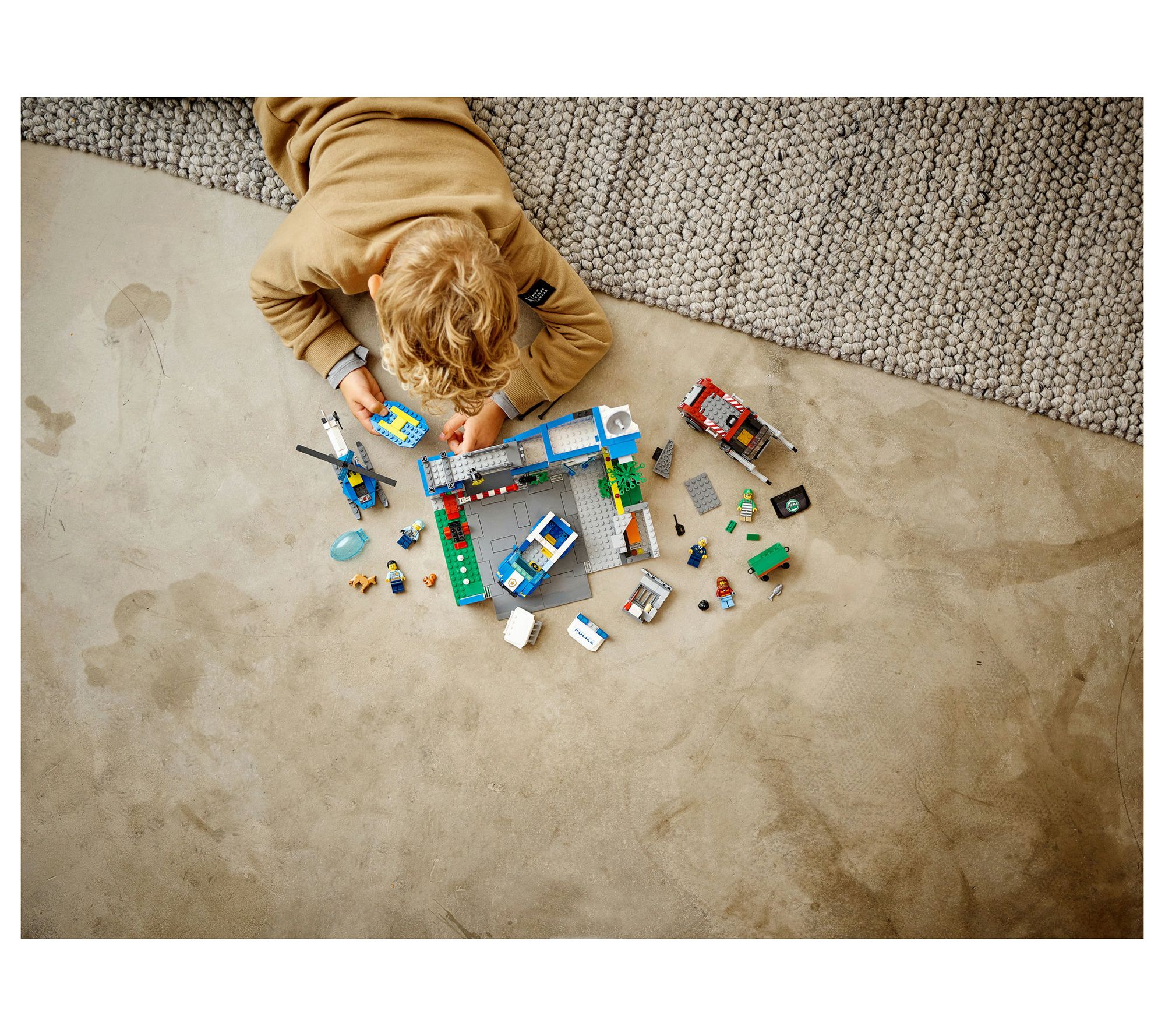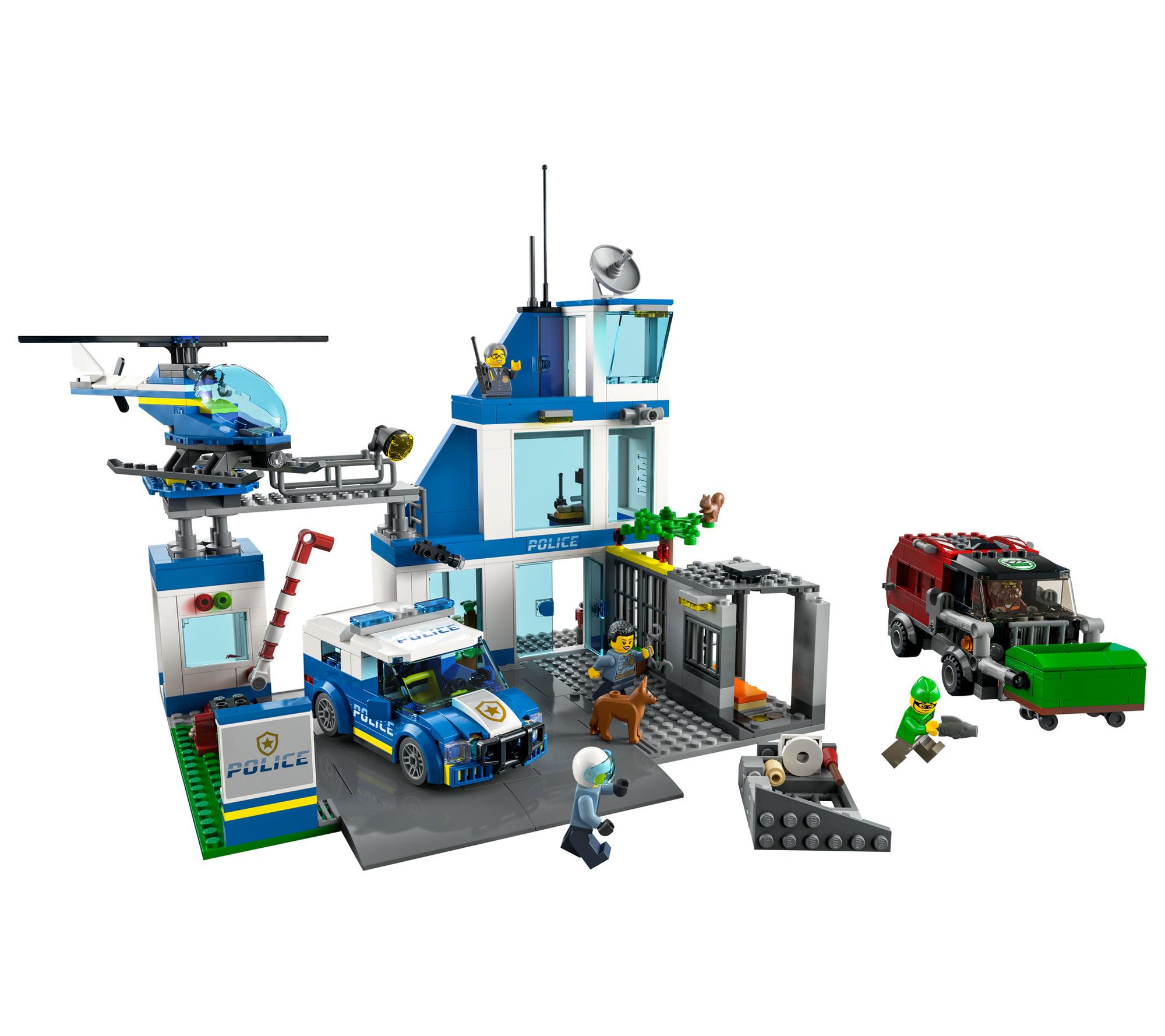 Unleash the excitement of law enforcement with the City Police Station building kit, where kids can create thrilling scenarios with a three-level station, complete with a jail breakout function and more. This engaging set includes a police car, helicopter, and a crook's customized garbage truck, alongside a Road Plate for easy connection to other playsets. With five minifigures from the LEGO City Adventures TV series, this set promises endless imaginative play. From LEGO.