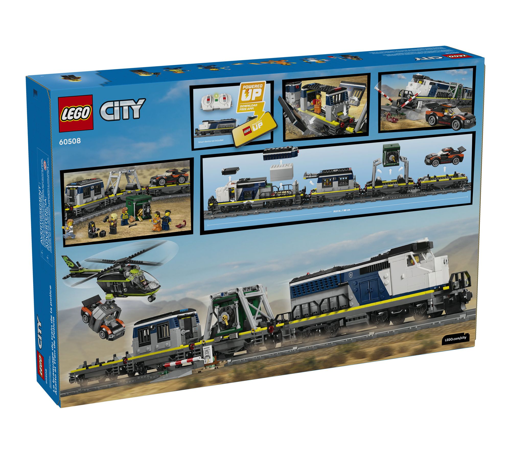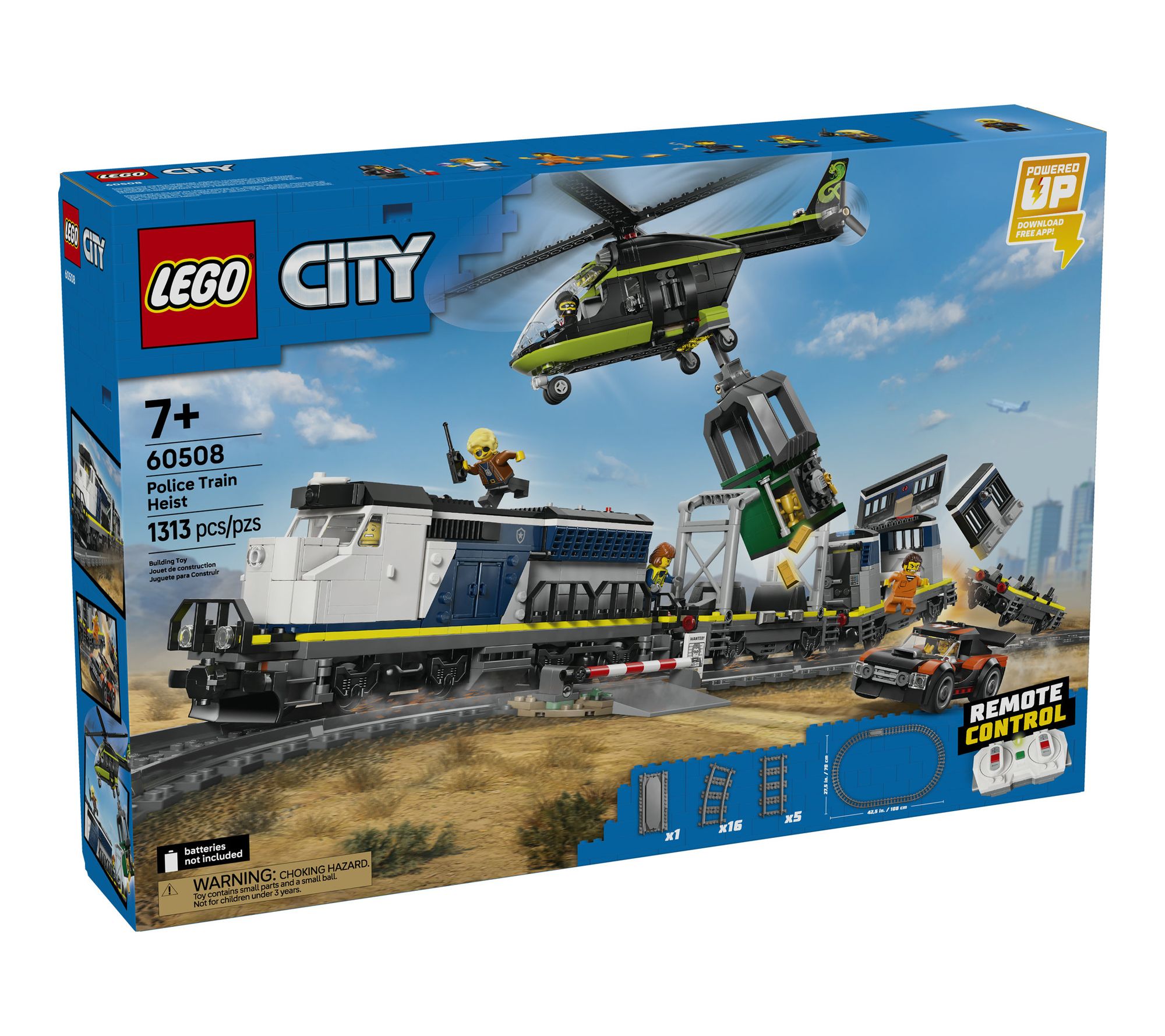 Take adventure to new heights and spark imaginations with this LEGO City Police Train Heist blocks playset -- a world of thrilling chases, clever escapes, and buildable fun unfolds as your child stages daring heists with the police train, rally car, helicopter, and a cast of minifigures. Powered-up features and creative play invite endless stories, where the city police and crooks compete in action-packed missions. From LEGO.
