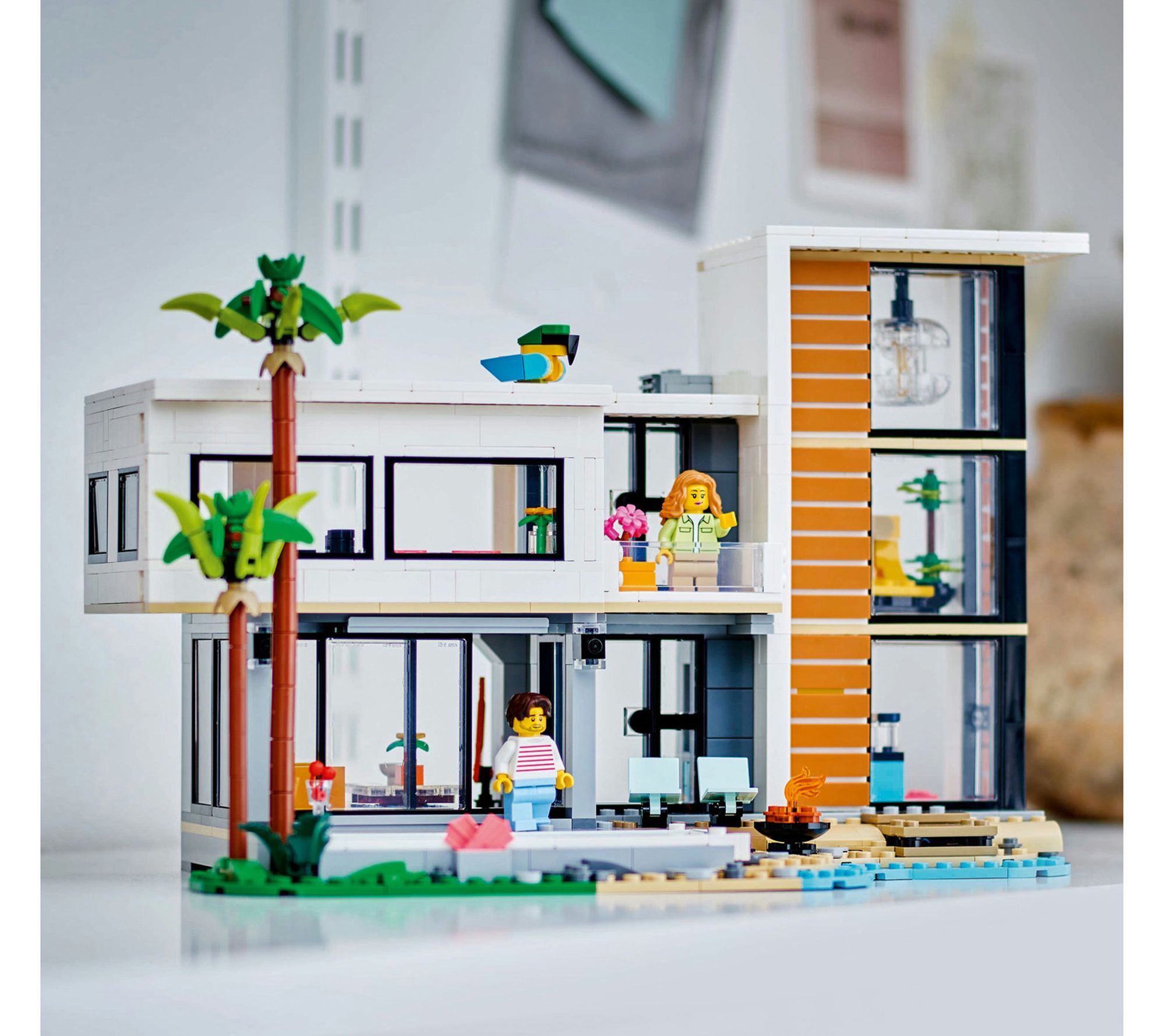 Get ready to explore endless possibilities with the LEGO Creator 3-in-1 modern house toy set. Build a luxurious beach house with a swimming pool, transform it into a stylish three-story city building with a hot tub and roof terrace, or create a cozy forest cabin. Perfect for imaginative play and display, this set offers hours of creative fun. From LEGO.