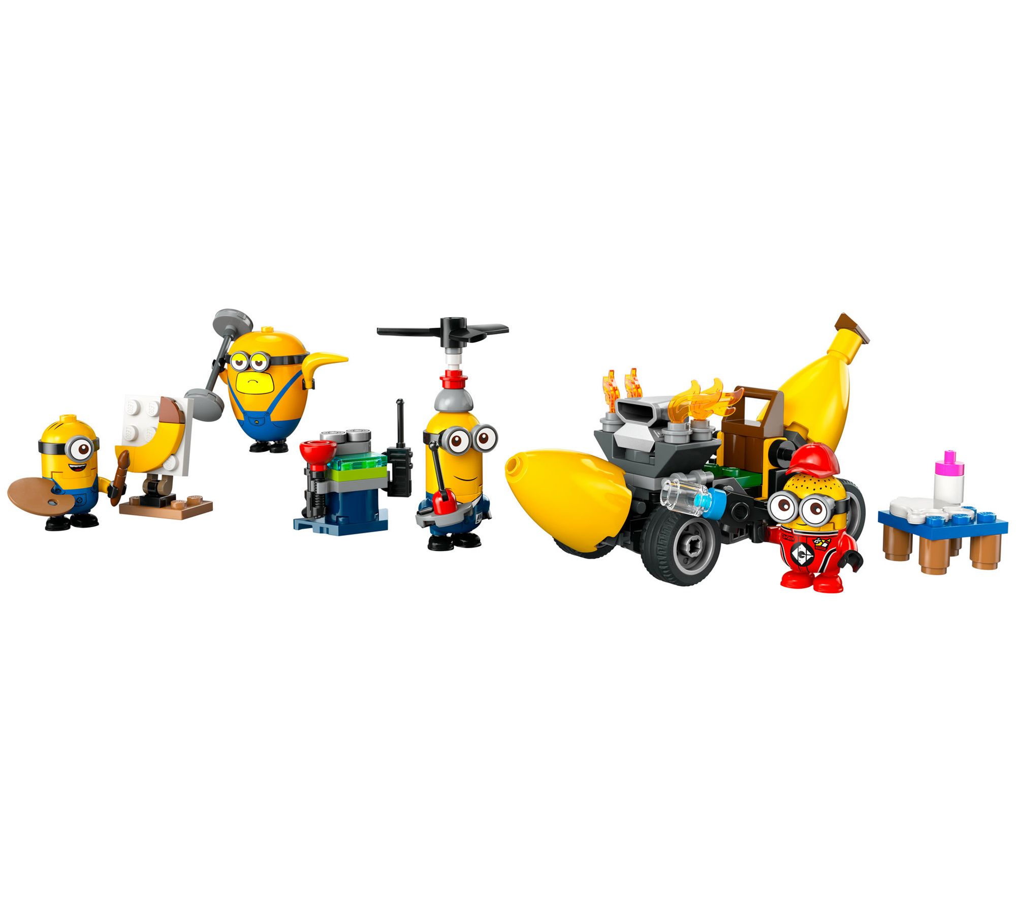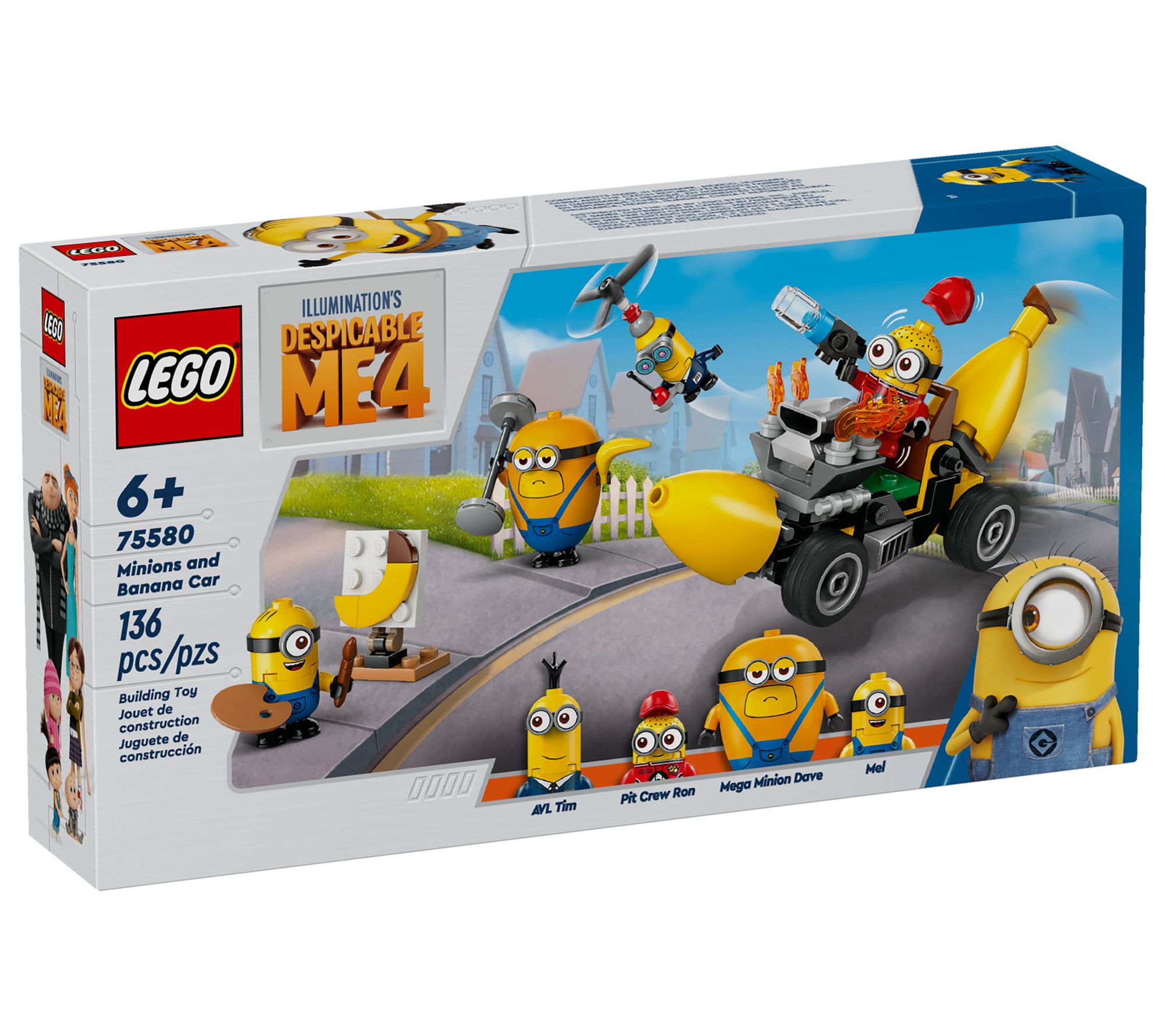 Go bananas with the LEGO Despicable Me 4 Minions and Banana Car Toy! Watch Mega Minion Dave lift weights while Creative Mel paints a banana portrait. Pit Crew Minion Ron drives the banana car, and secret agent AVL Tim flies by with his spinning rotor blades. Let your imagination run wild with this fun-filled set. From LEGO.