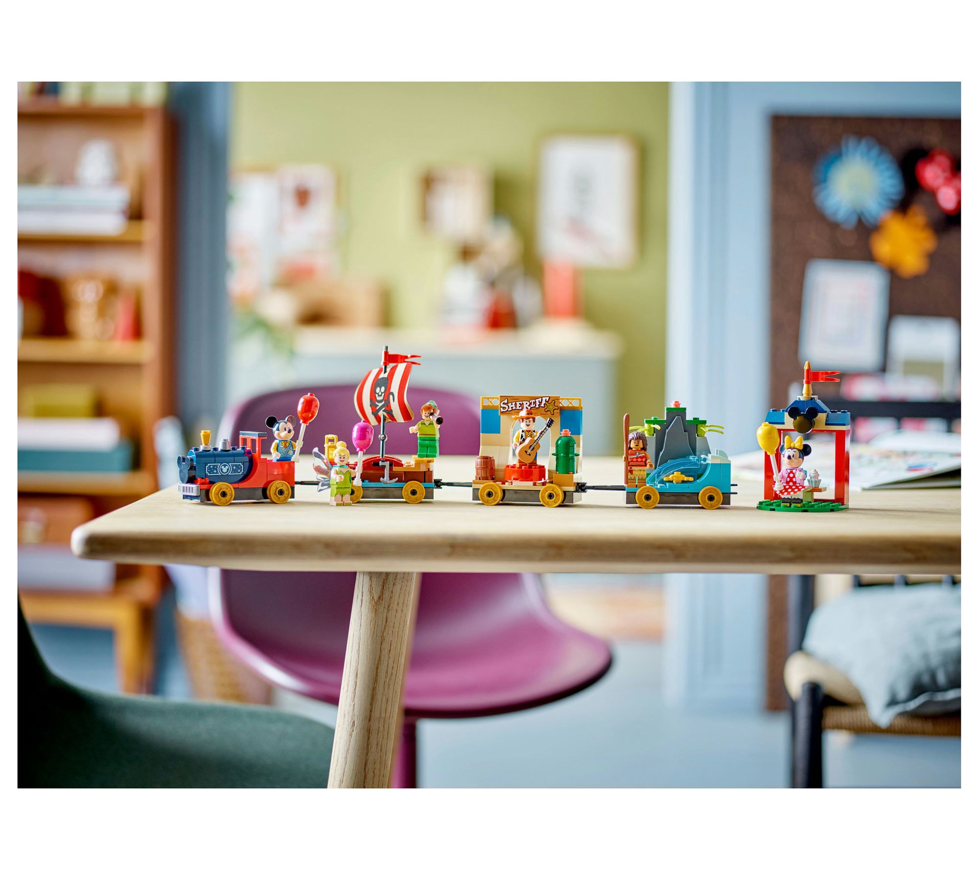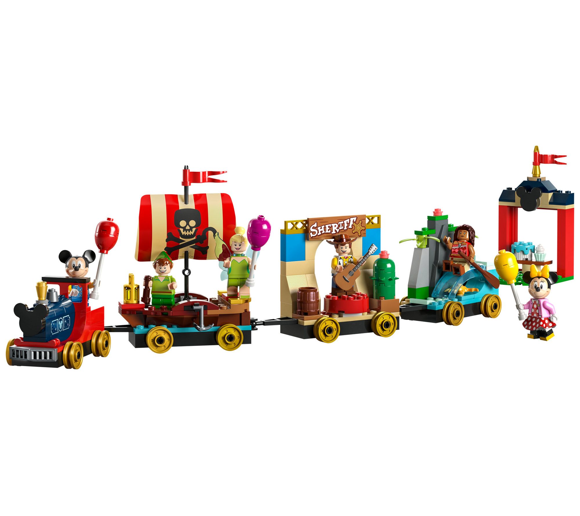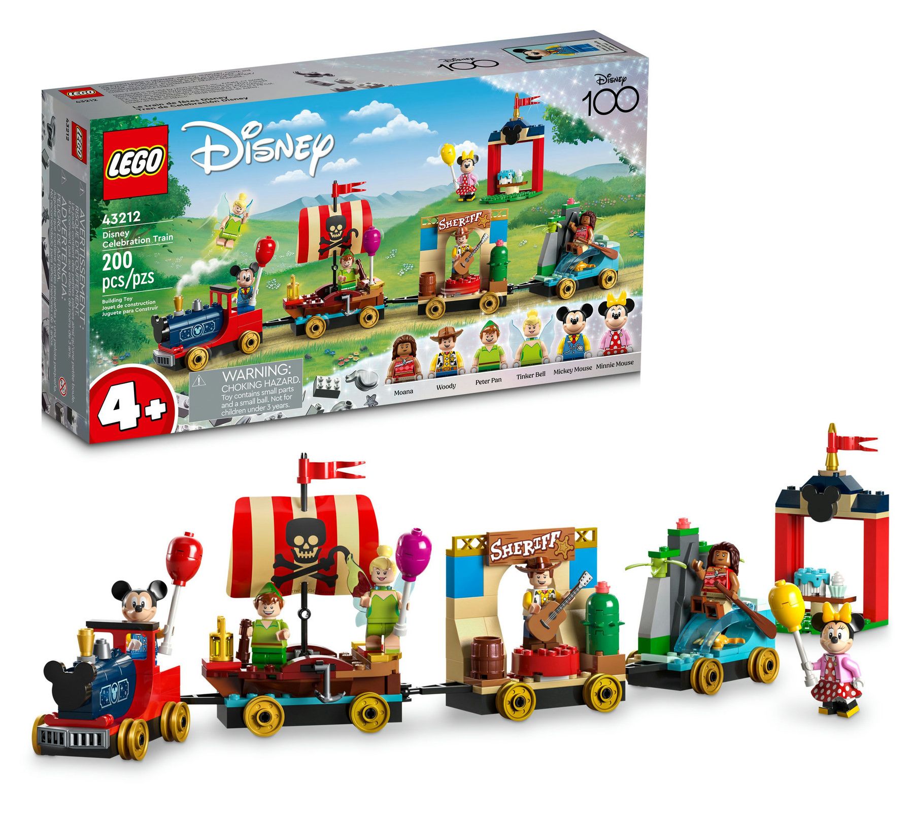 Celebrate Disney's 100th anniversary with the LEGO Disney Celebration Train set, a magical build-and-play experience that brings together iconic Disney characters on a whimsical train adventure. This 200-piece set includes a station, engine, three train floats, and six LEGO minifigures: Mickey Mouse, Minnie Mouse, Moana, Peter Pan, Tinker Bell, and Woody, allowing for endless imaginative play. From LEGO.