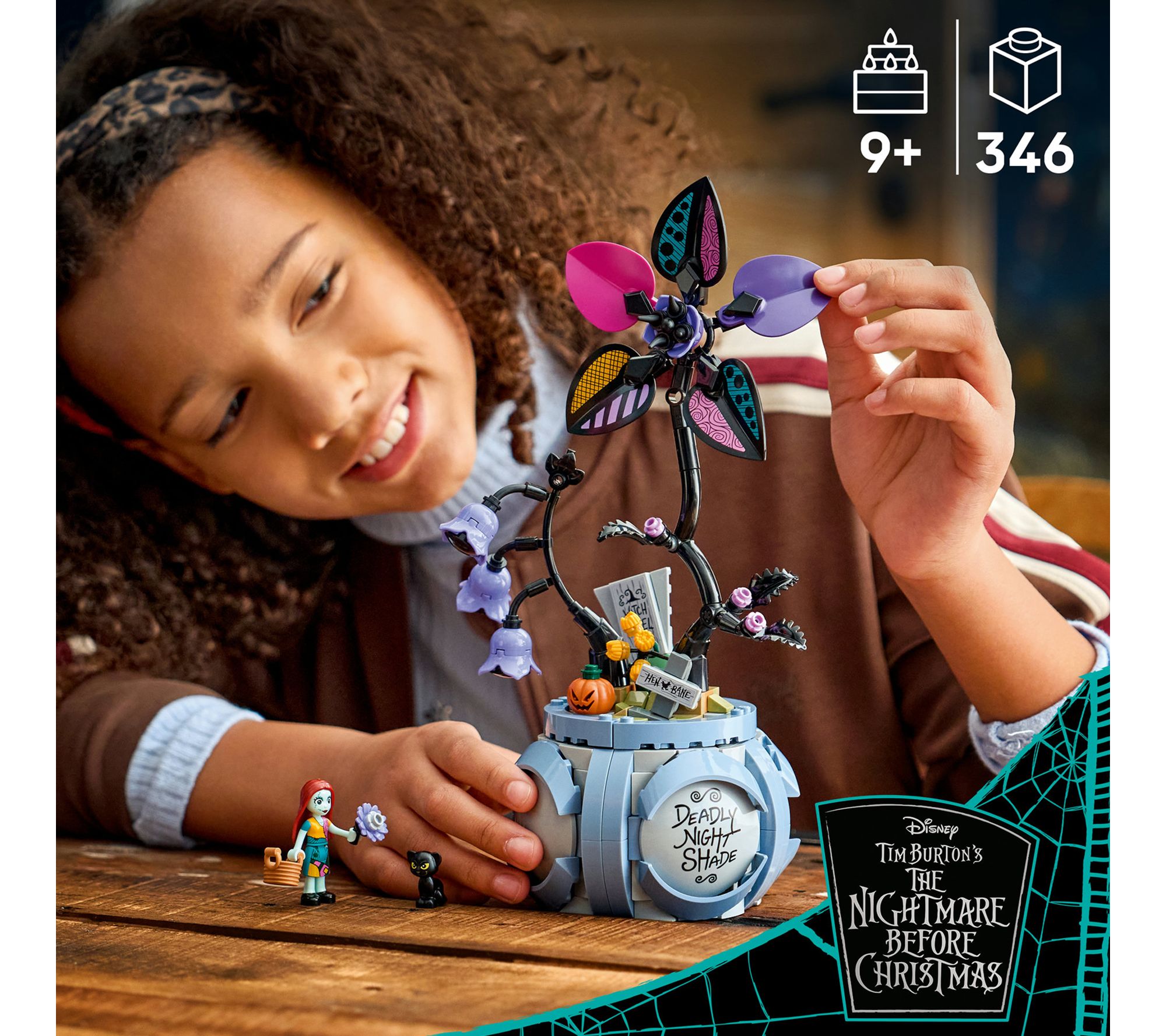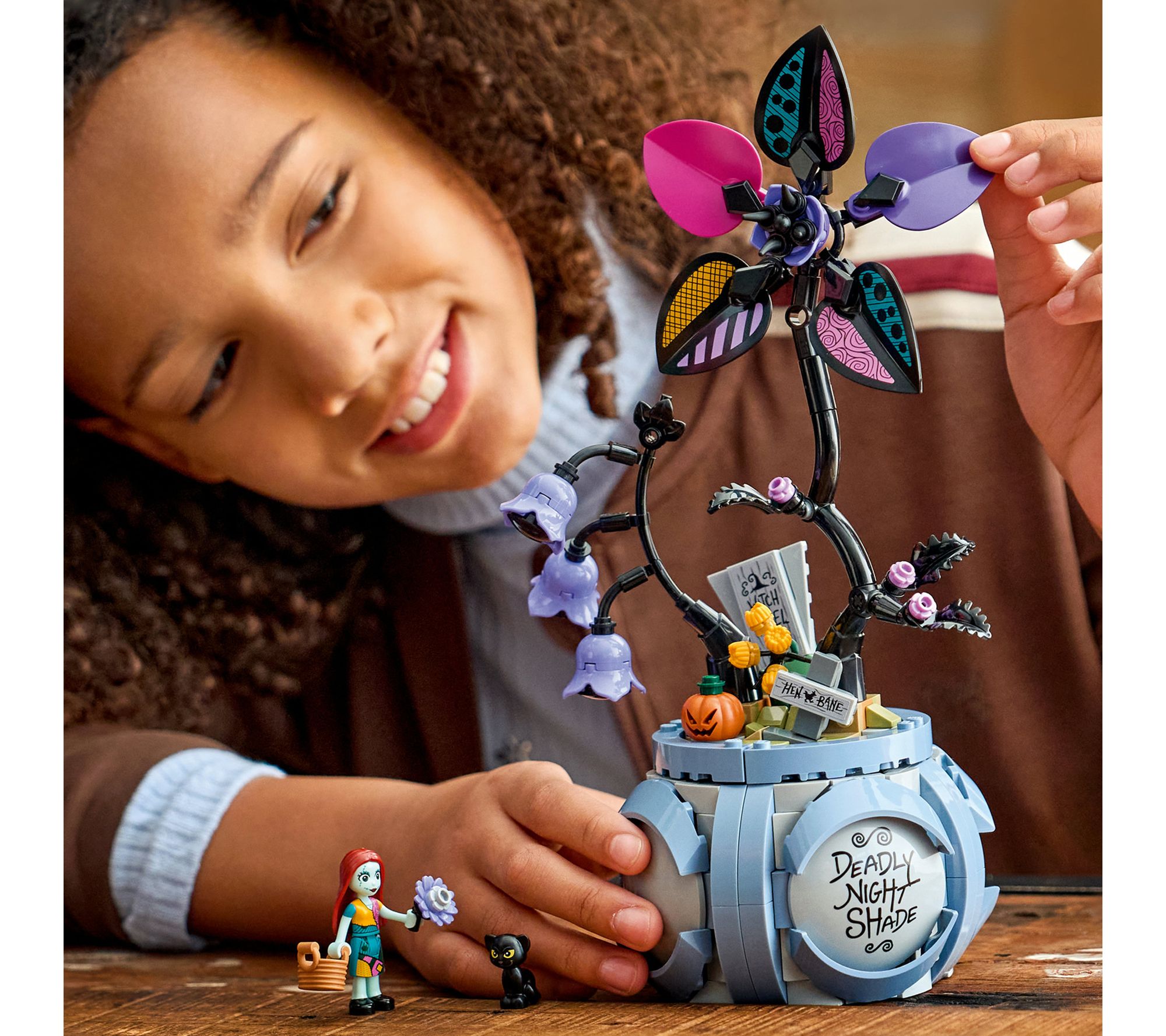 Fans of Tim Burton's The Nightmare Before Christmas can enjoy hours of creativity with this engaging blocks set, building a flowerpot inspired by Sally's iconic patchwork dress and discovering hidden surprises inside. Assemble two flowers and characters, then help Sally mix magical potions -- all while a mischievous cat tries to cause a little trouble. From LEGO.