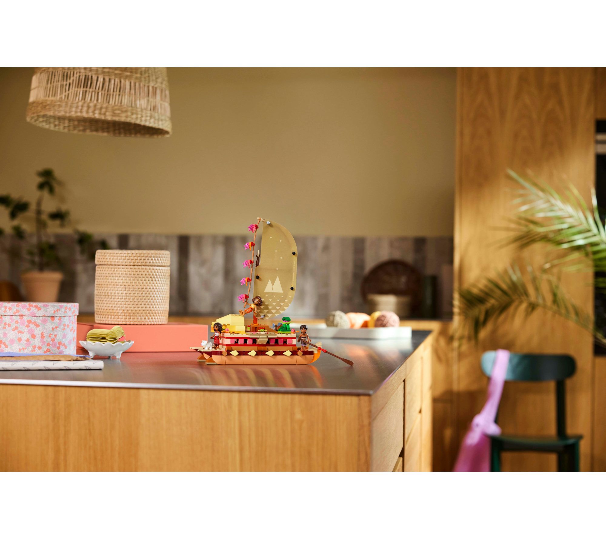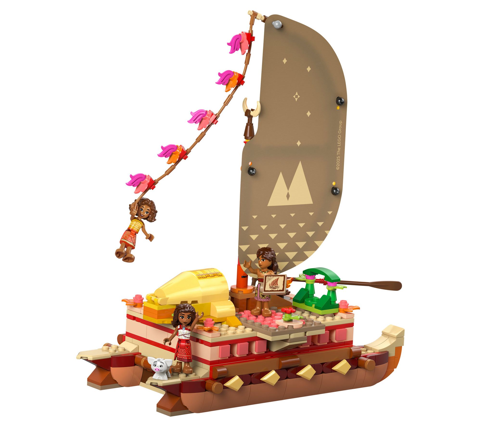 Let kids join Moana and her crew for thrilling sea adventures! They'll love pretending to climb aboard Moana's Adventure Canoe, complete with Loto, Moni, and Pua, raising the decorated textile sail, and using the lei hulu on the mast to navigate the seas. Below the deck (where Pua naps adorably) they'll find supplies for the trip. From LEGO.