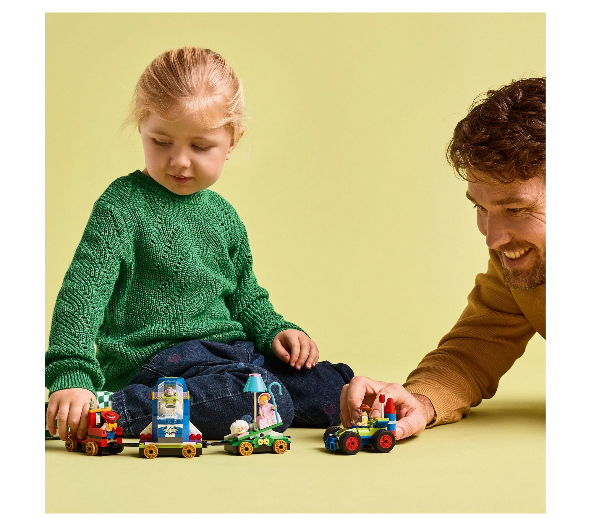 Celebrate the adventure of Disney and Pixar's Toy Story with this playful blocks set, bringing Woody, Jessie, Bo Peep, and Buzz Lightyear together on a colorful parade train. Kickstart imaginative play as a buildable western engine and detailed themed floats spark creativity and storytelling during playtime. From LEGO.