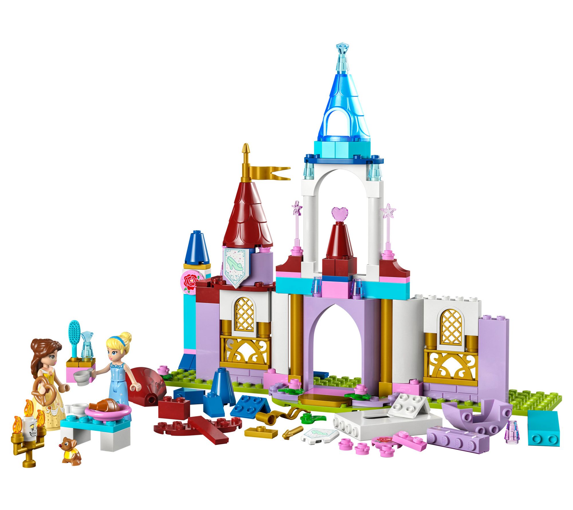 Unlock a world of imagination and adventure with the LEGO Disney Princess Creative Castles build set. Perfect for Disney Princess fans, this 140-piece set brings to life the enchanting worlds of Disney's Belle and Cinderella, complete with Lumiere and Gus LEGO figures. It offers a unique opportunity for kids to engage in social building with family or friends, using the LEGO Builder app for an interactive construction experience. From LEGO Disney.