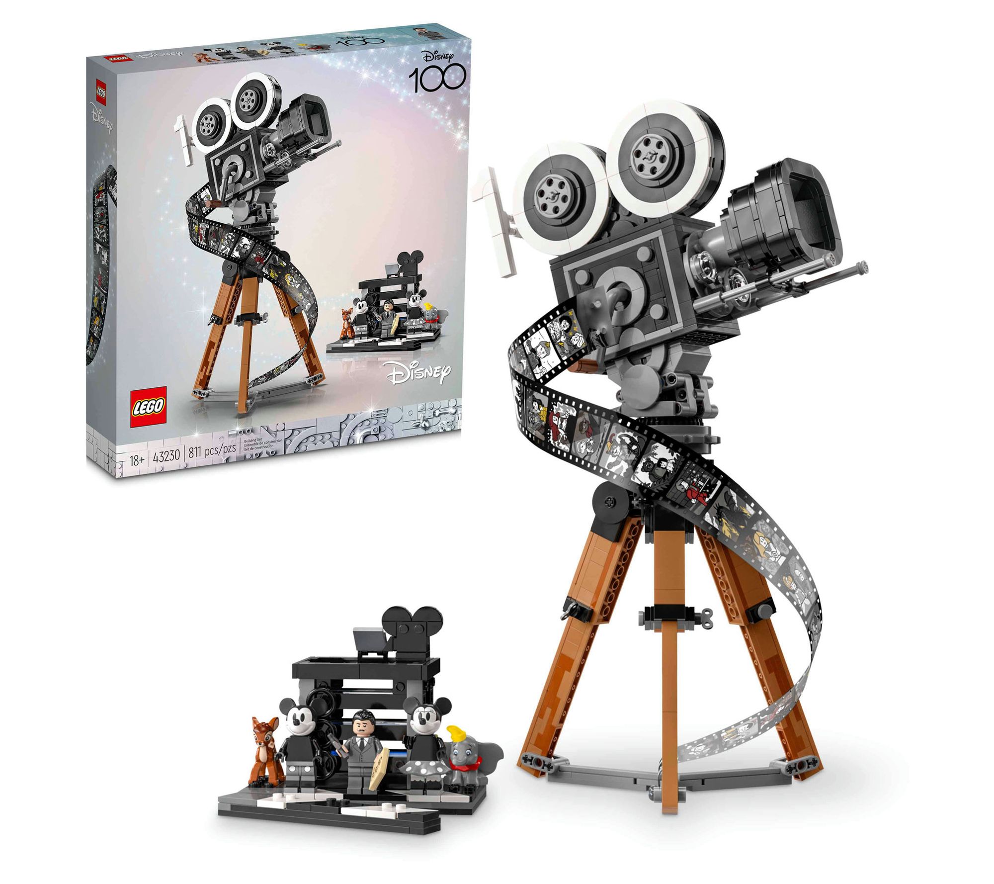 Celebrate a century of Disney magic with the LEGO Disney Walt Disney Tribute Camera building kit. This meticulously detailed set includes a vintage-style movie camera, a director's clapperboard, and three LEGO Disney minifigures, bringing iconic Disney moments to life. Perfect for Disney enthusiasts and collectors, it offers a unique building experience and a splendid display piece to honor Disney's 100th anniversary. From LEGO.
