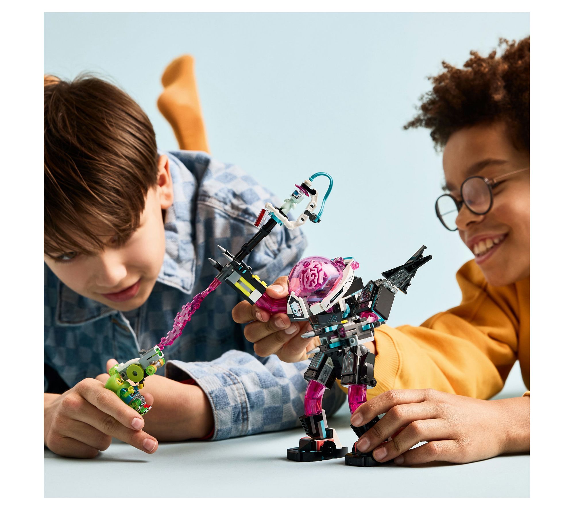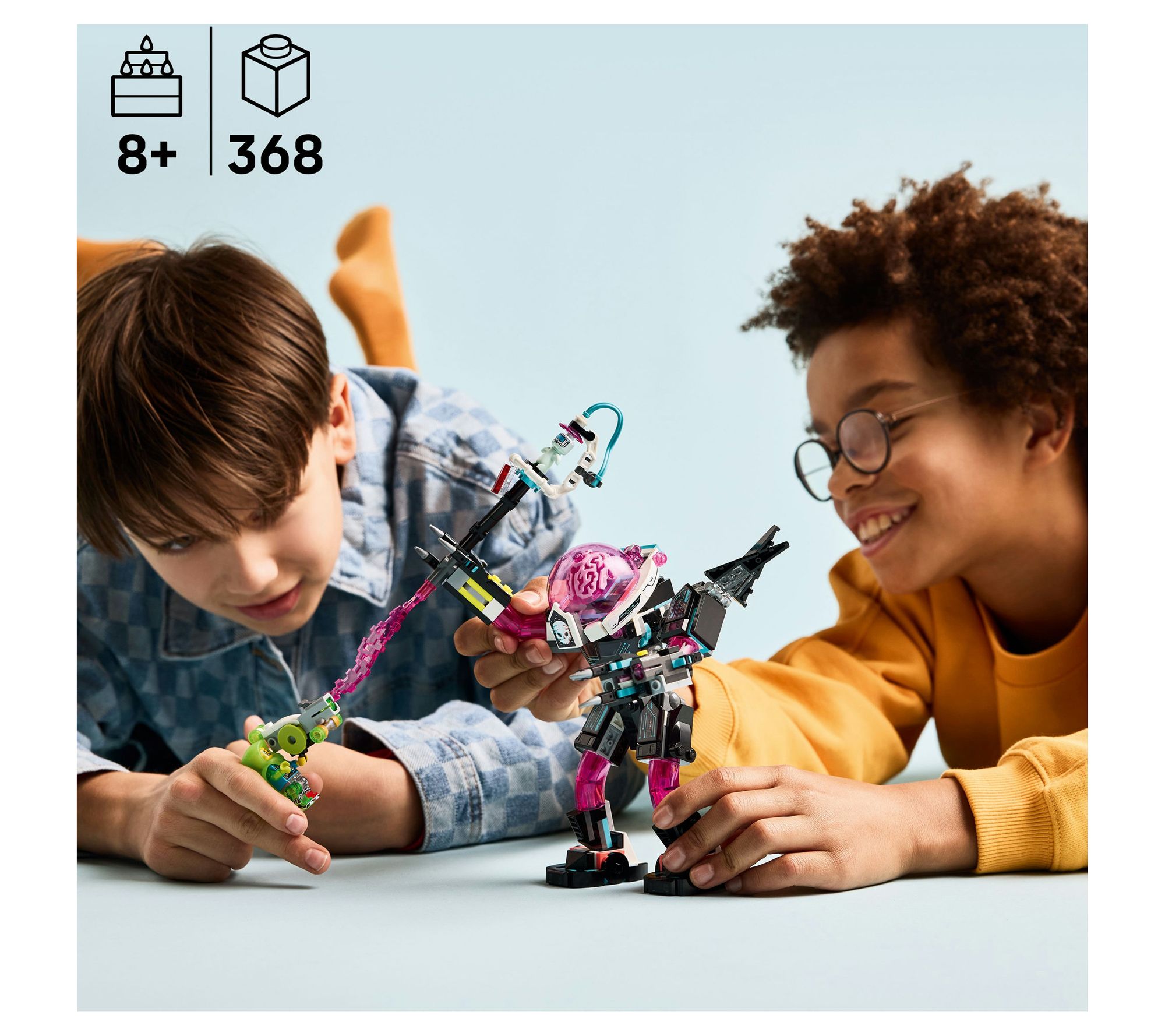 The action heats up as you team up with Mateo to rescue the captured Dreamling in the LEGO DREAMZzz Mateo vs. Cyber Brain Mech blocks set. Every build offers two imaginative ways to bring fantasy to life, crafting either a powerful mech robot or scorpion creature for endless play. Dive into hands-on fun with creative details, modular shooters, and minifigure adventures. From LEGO.