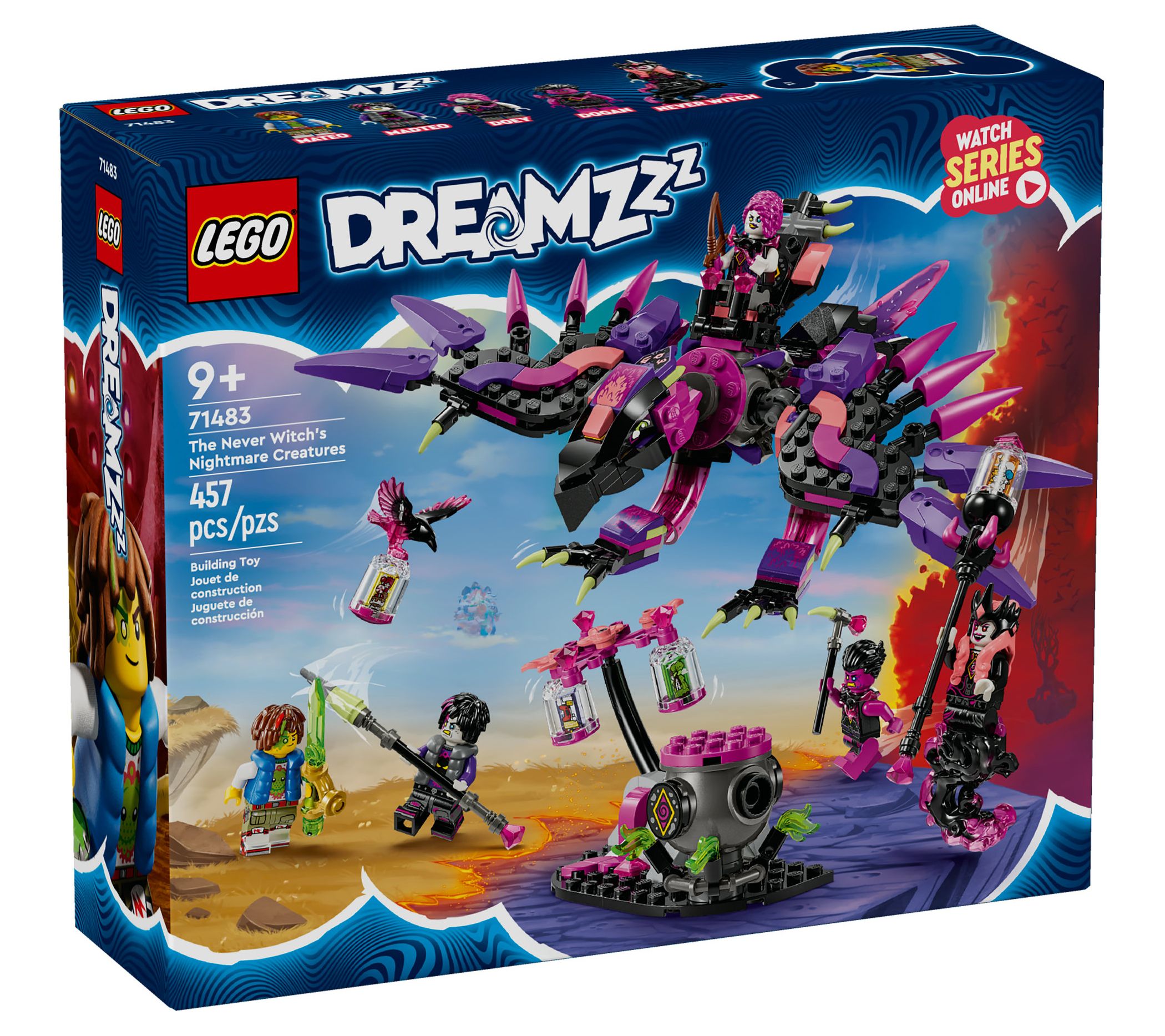 Ready to take on the Never Witch and her nightmare creatures? With LEGO DREAMZzz The Never Witch's Nightmare Creatures, young dreamers can build a raven toy, a wolf toy, or a DoomBlob figure and let their imaginations run wild. This 457-piece set includes five minifigures and offers endless creative possibilities. From LEGO.
