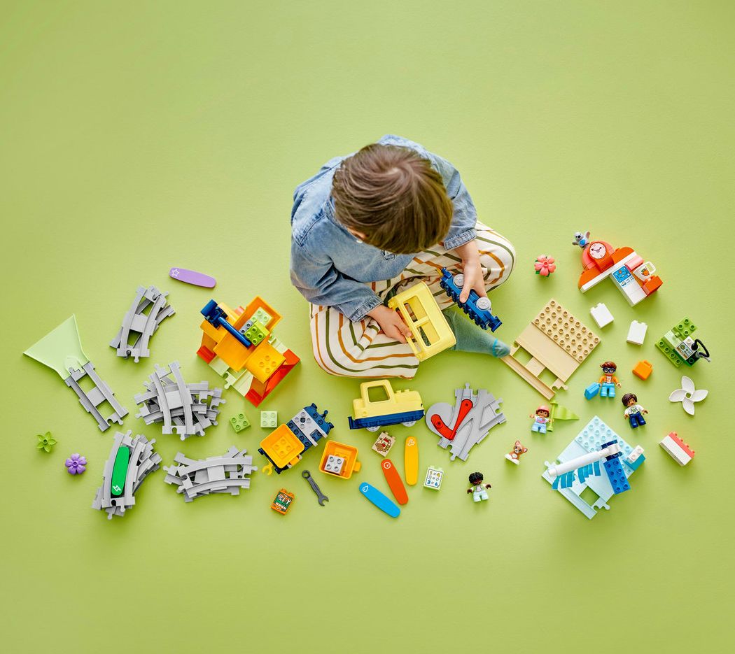 Encourage your toddler to embark on an action-packed learning journey with this fun interactive train set. First, they build the track, and then take to the driving seat as they choose a range of activities, including washing, loading cargo, and charging the engine. Each activity features an action brick to bring the play to life. From LEGO DUPLO.