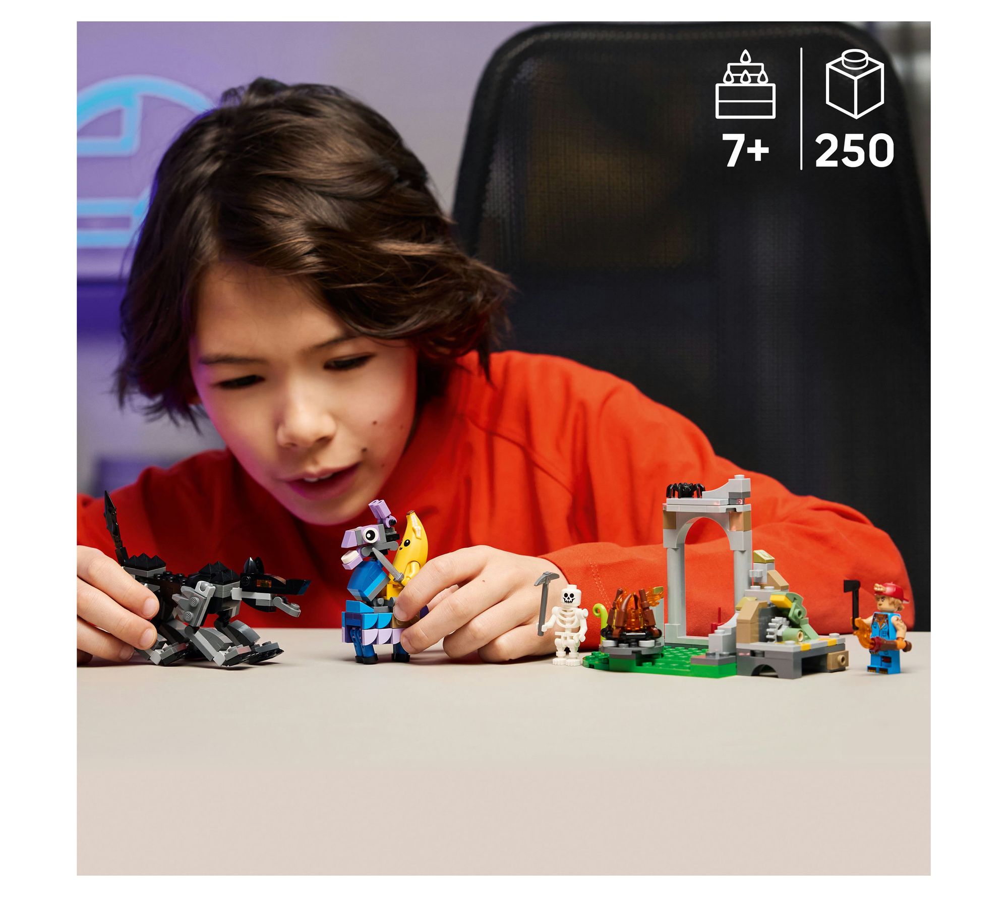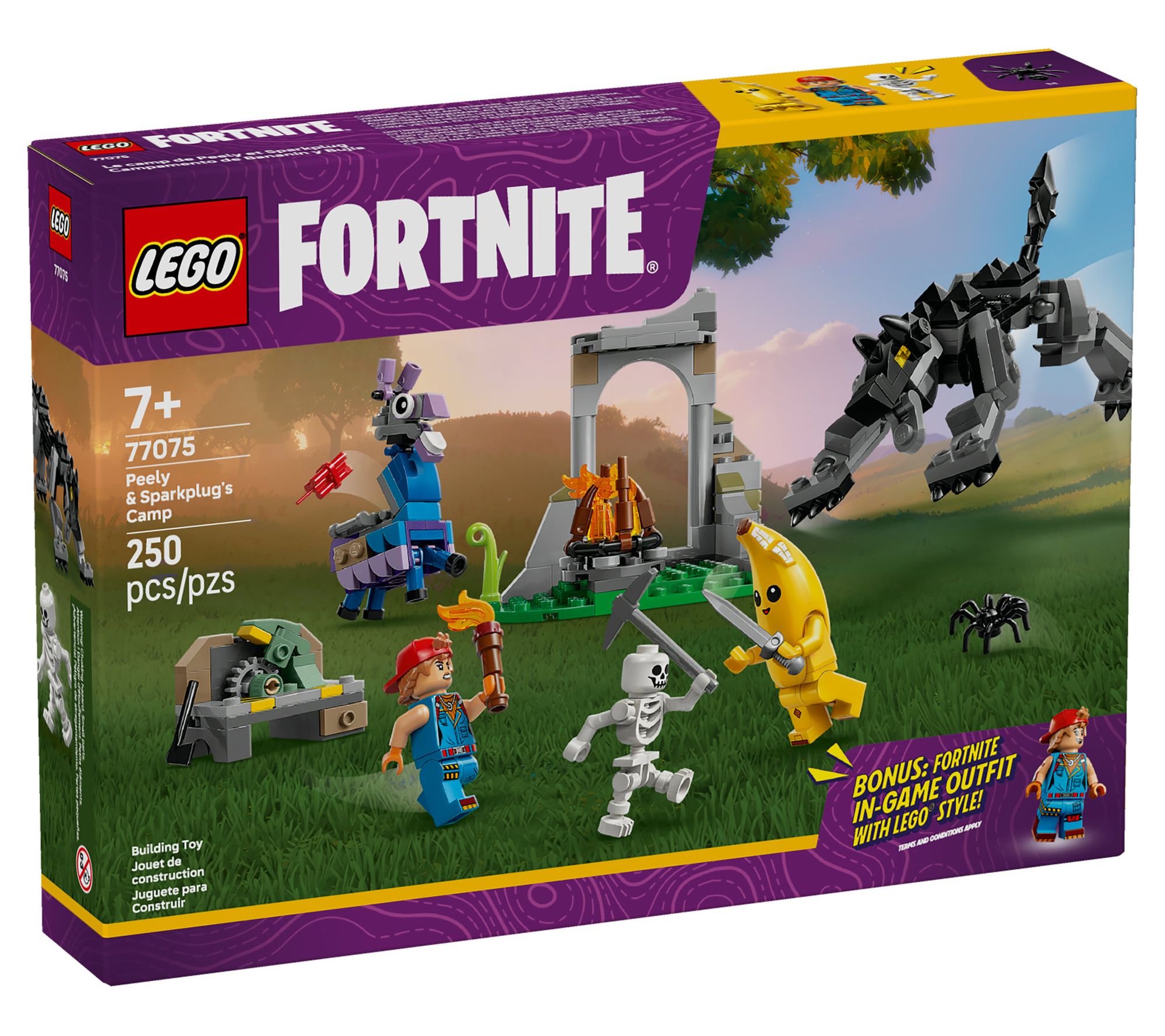 Your favorite Fortnite moments jump off the screen as you build, explore, and role-play with this LEGO Fortnite Peely & Sparkplug's Camp block set. Recreate exciting game challenges, craft the campfire and workbench, and bring memorable characters like Peely, Sparkplug, and the Supply Llama to life. Adding a bonus in-game outfit, this set unlocks fresh ways for gamers to connect with the world of Fortnite. From LEGO.