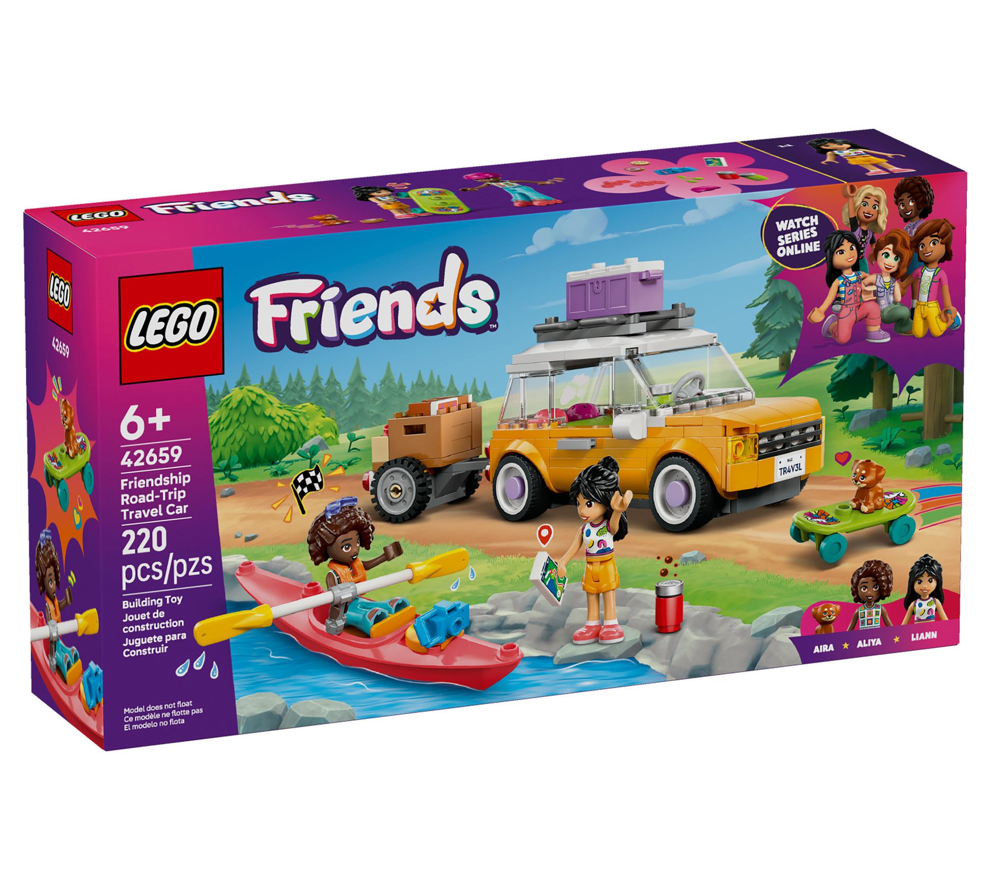 Adventure awaits as kids bring friendship stories to life with this LEGO Friends blocks set, featuring Liann and Aliya on a road-trip journey with their playful puppy. With a buildable car and trailer, plus a kayak, skateboard, in-line skates, and picnic-ready cooler, there are endless opportunities for imaginative role play and creative building fun. From LEGO.