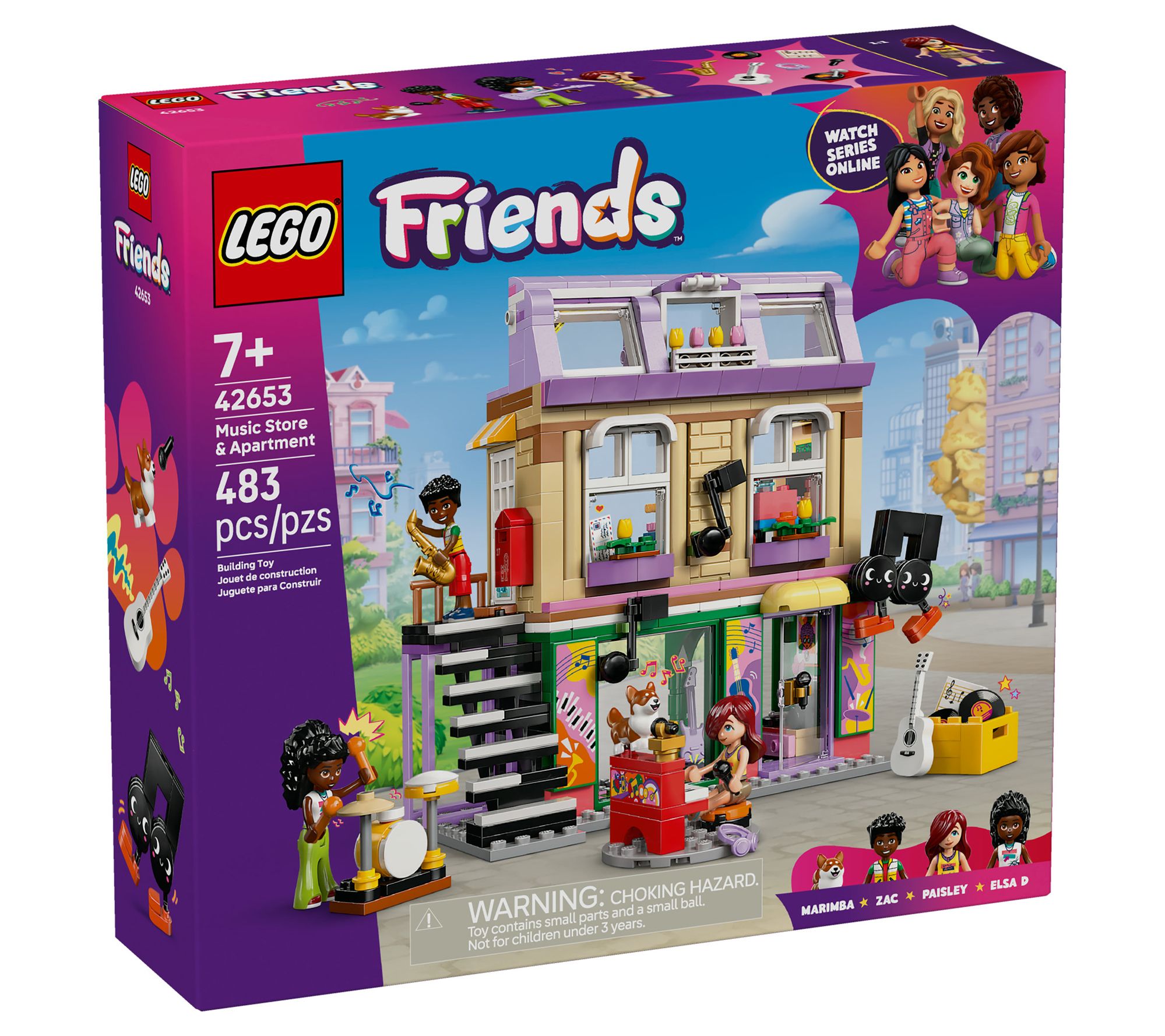 Musical adventures await as Paisley and Zac explore Heartlake City's music store and share creative moments in the apartment above. Build the blocks, try out a toy drum kit, saxophone, or guitar, and create imaginative friendship stories with LEGO Friends characters while Marimba the corgi joins in the fun. From LEGO.