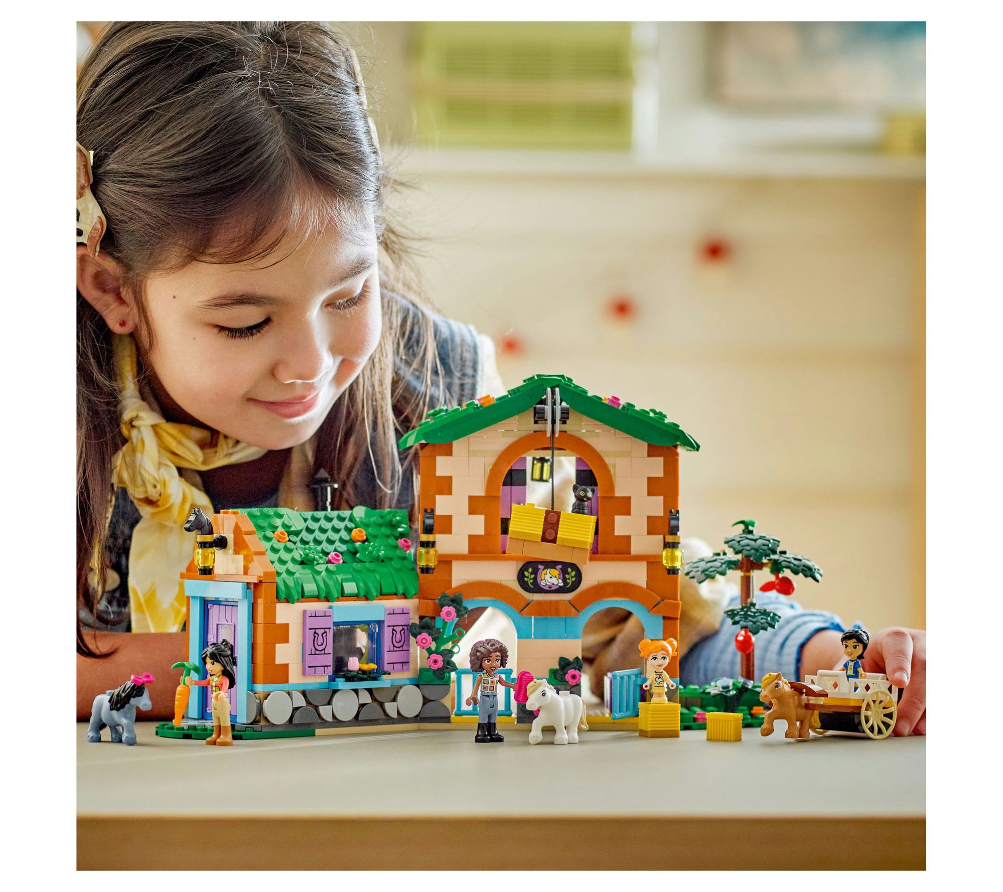 Horse enthusiasts can experience Heartlake City's Pony Ranch & Stable up close, joining Aliya, Liann, Victoria, and Ella in imaginative block-building adventures. Feed and groom three ponies, use the working hay elevator, and relax in the cozy loft after a busy day of play. Enjoy endless creative storytelling with these blocks, minidolls, ponies, and playful accessories. From LEGO.