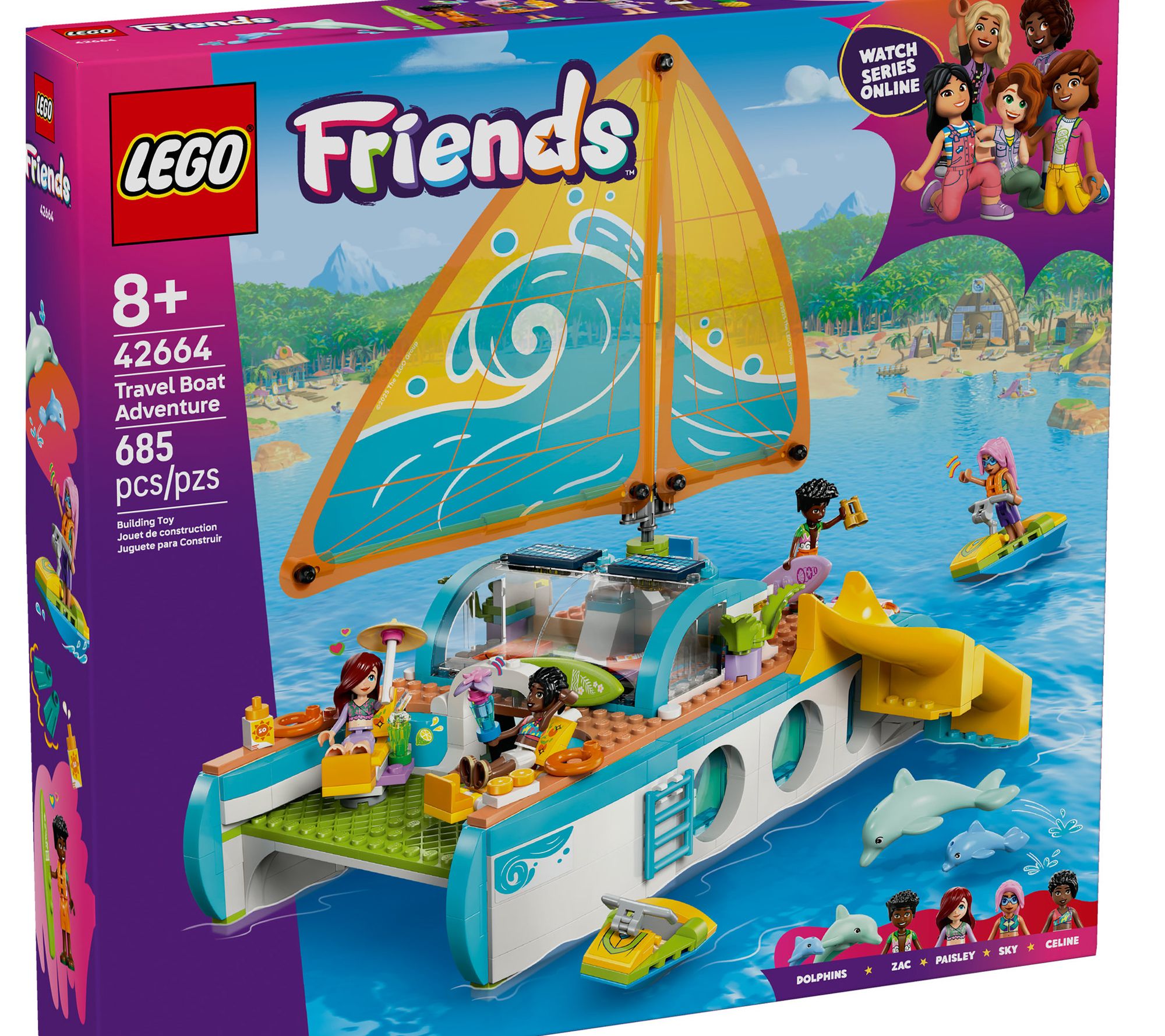 Ready for adventure? The LEGO Friends Travel Boat Adventure building kit lets kids bring Paisley, Zac, Celine, and Sky on a sailing journey packed with excitement. With features like a slide, gaming zone, water scooters, and two dolphin figures, there's plenty to explore and countless friendship stories to create. From LEGO.