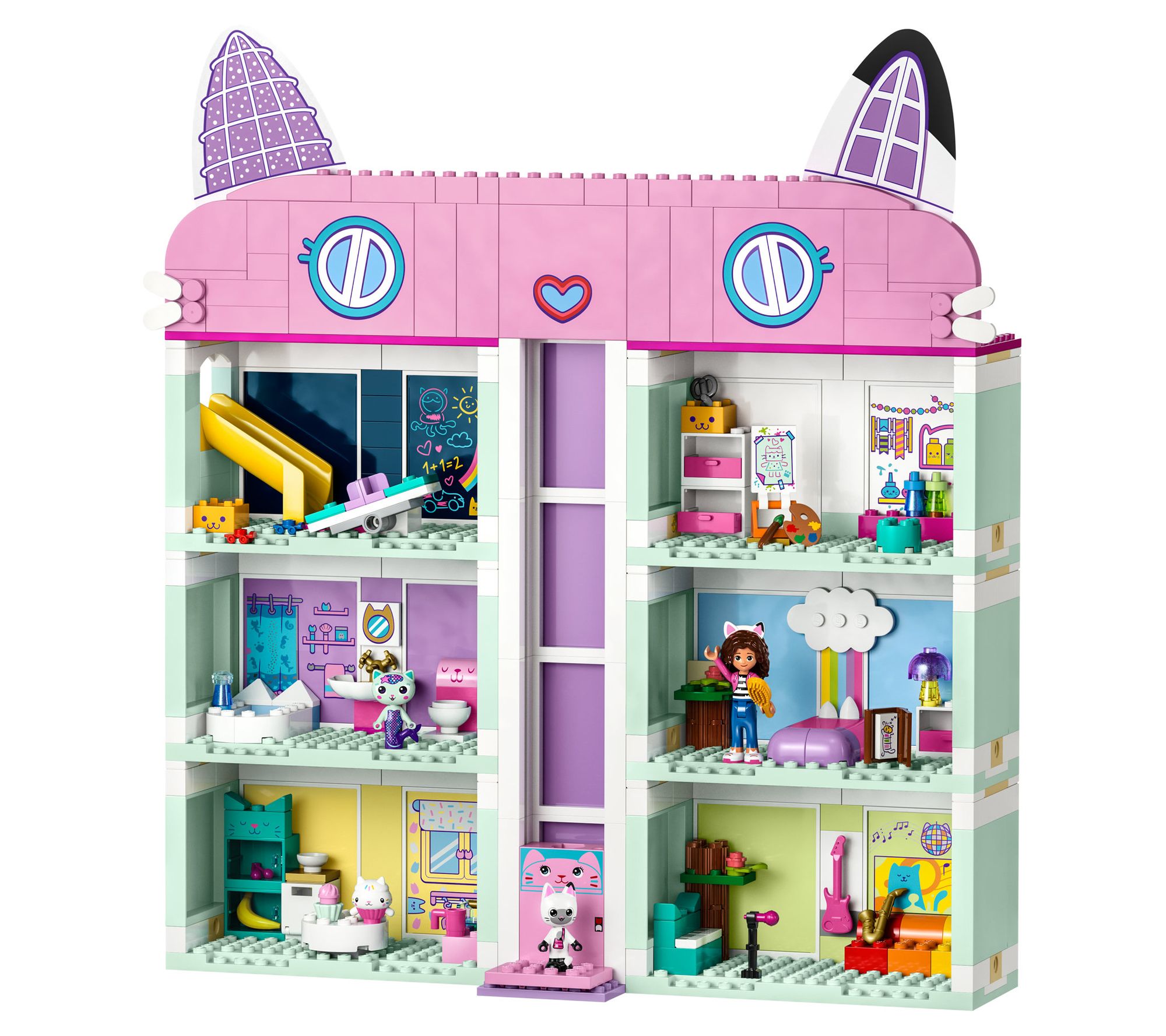Dive into a world of imaginative play with the LEGO Gabbys Dollhouse 10788 building toy set. Perfect for fans of the DreamWorks Animation TV show, this set brings Gabby's eight-room dollhouse to life, complete with a sliding elevator and a rotatable dance floor on the rooftop. Kids will love exploring each themed room with Gabby, Pandy Paws, Cakey, and MerCat, making it an ideal gift for creative minds aged 4 and up. From LEGO.