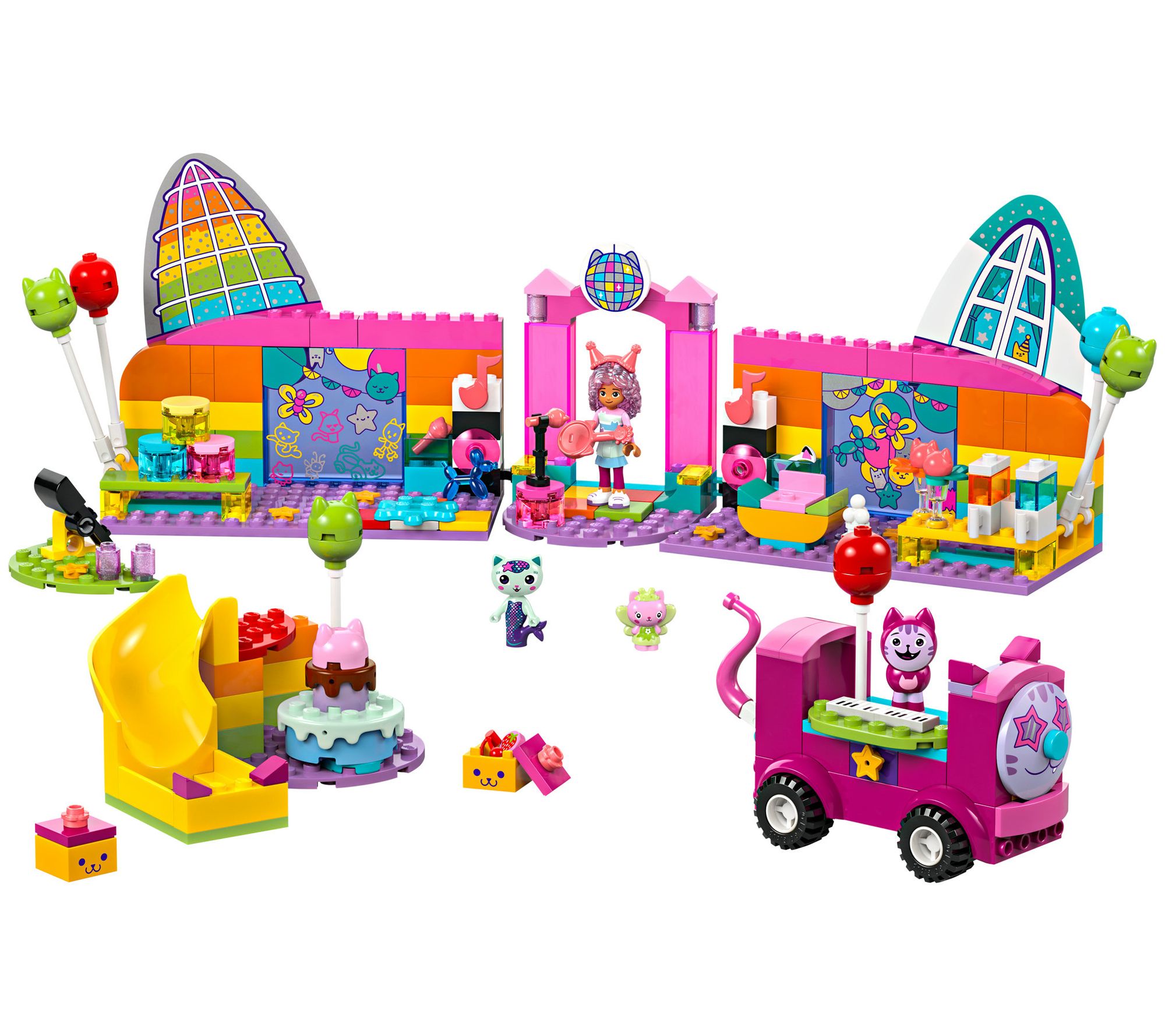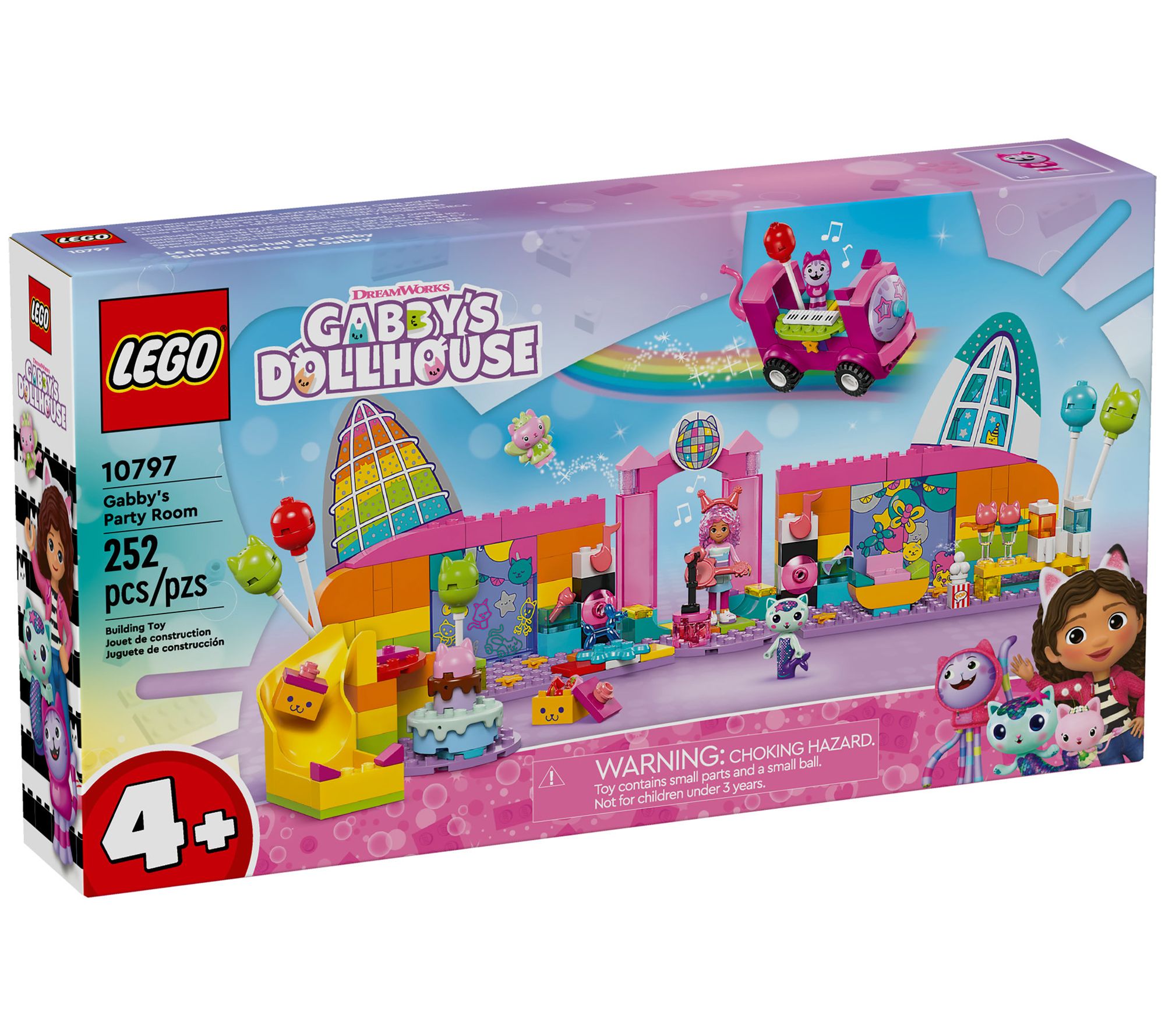Join the fun with the LEGO Gabby's Dollhouse Gabby's Party Room Playset! Celebrate Gabby's birthday with DJ Catnip on the keyboard, MerCat dancing, and a slide delivering gifts. This 252-piece set offers endless imaginative play for kids who love DreamWorks Animation's Gabby's Dollhouse. From LEGO.