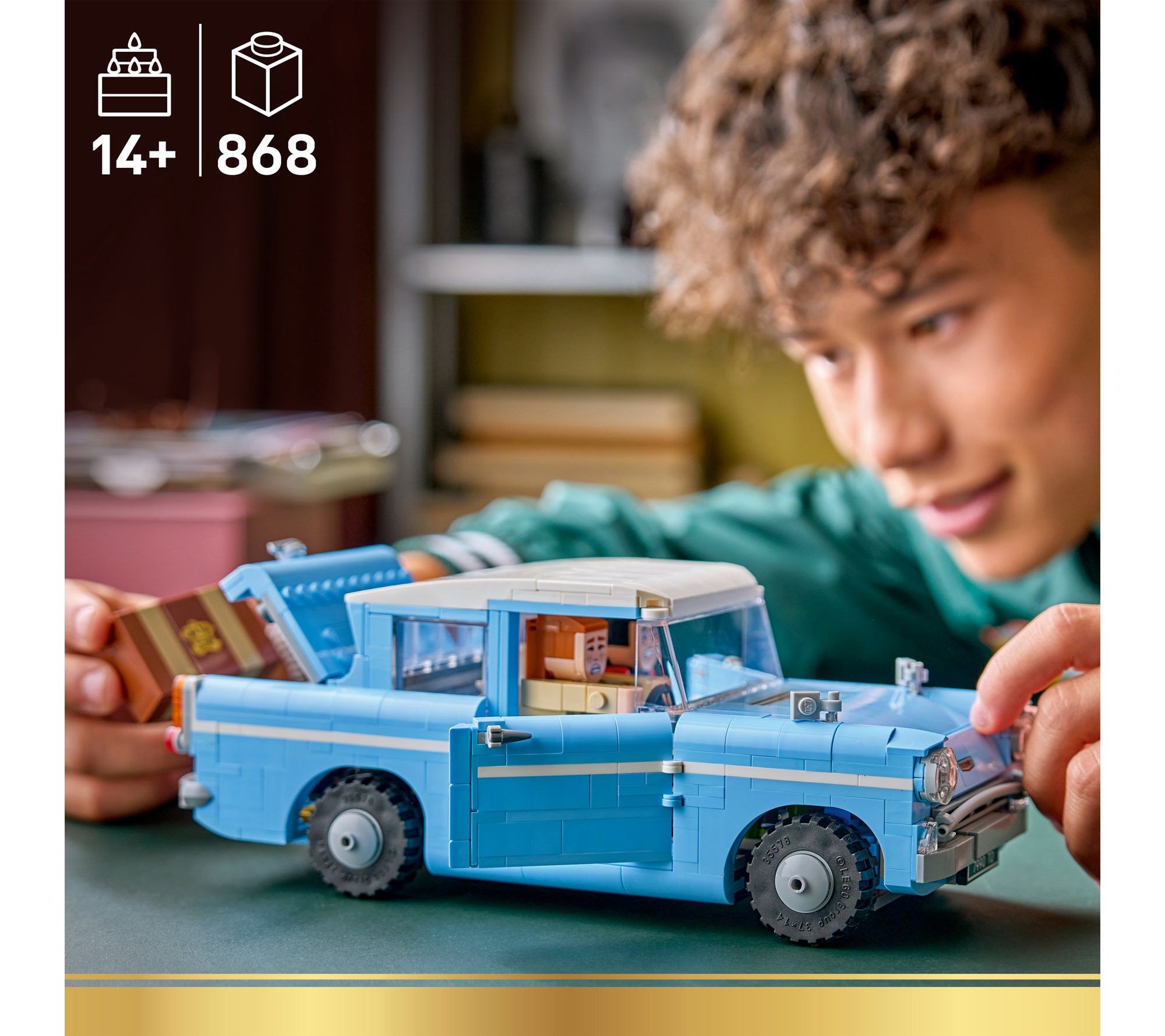 Relive magical moments and inspire fresh adventures with this richly detailed blocks set. Crafted for Harry Potter enthusiasts, the iconic Enchanted Flying Ford Anglia brings favorite scenes to life -- pop Harry, Ron, and Hedwig inside, then activate secret functions to make luggage fly from the trunk just like in the Chamber of Secrets. A standout display for any shelf or playful centerpiece for imaginative builds. From LEGO.