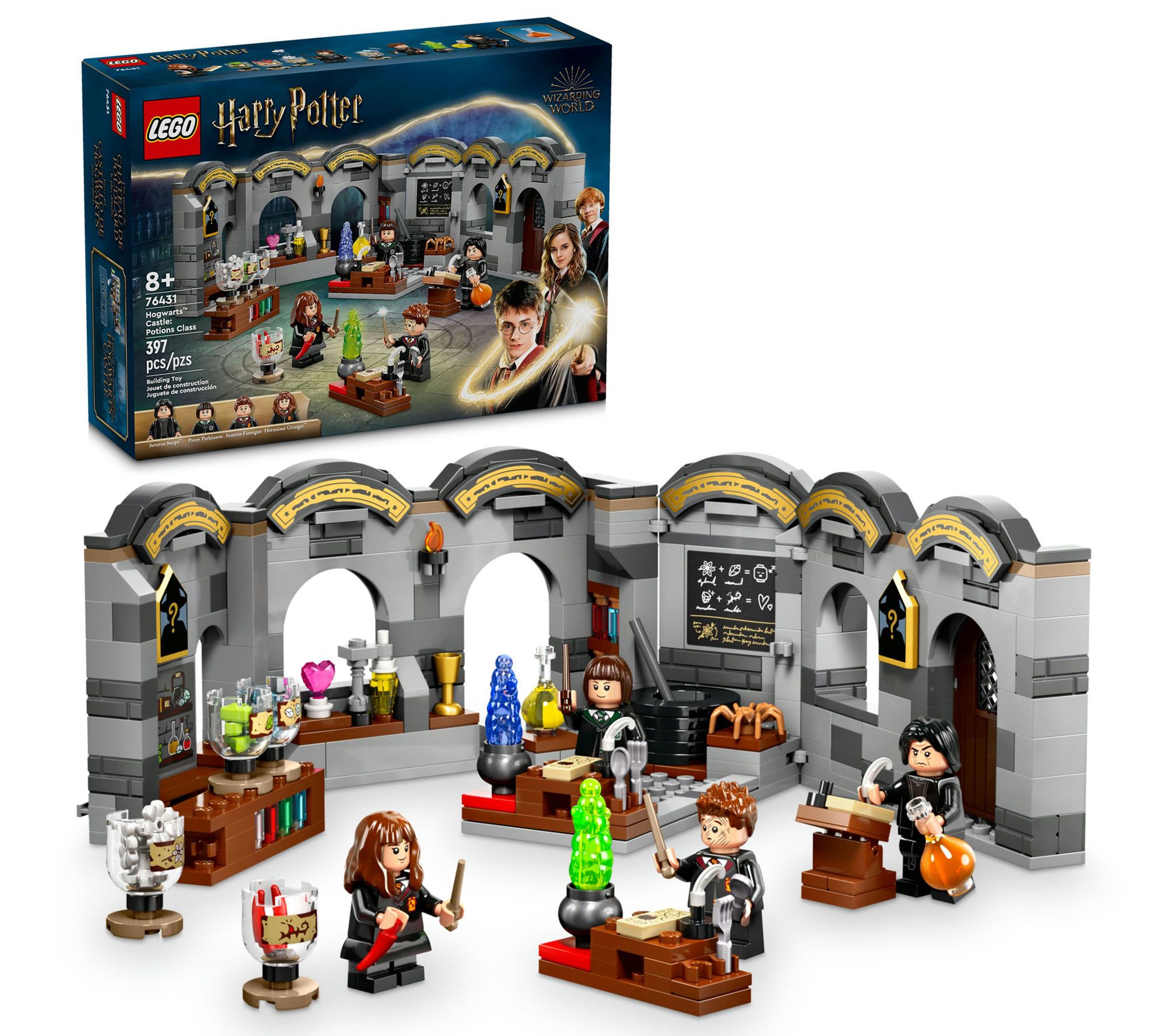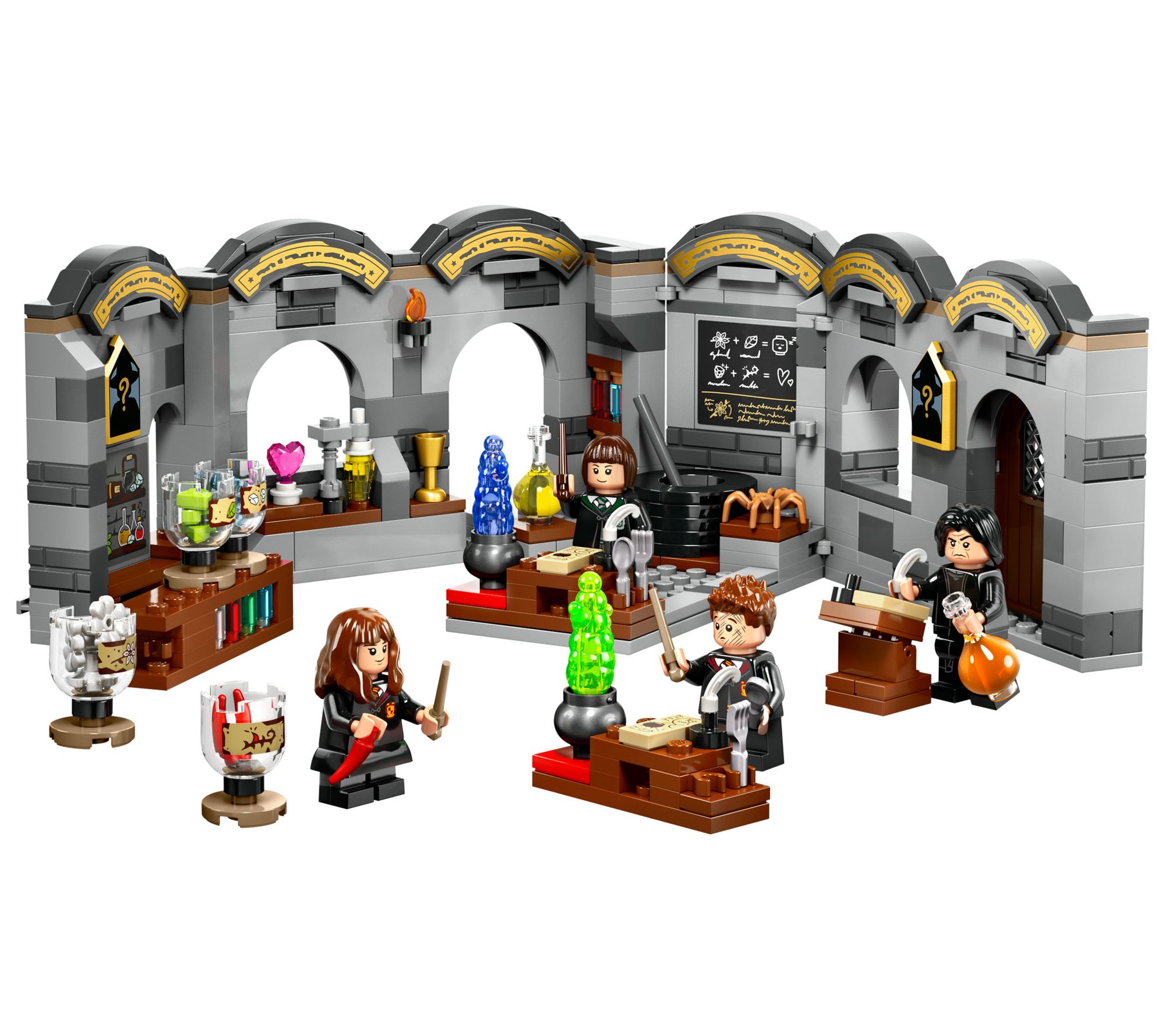 Join Hermione Granger, Pansy Parkinson, and Seamus Finnigan for a spellbinding potions class at Hogwarts Castle! This LEGO Harry Potter Hogwarts Castle: Potions Class set lets you recreate Professor Snape's magical lessons in a detailed dungeon classroom. Mix potions, follow instructions on the blackboard, and enjoy hours of imaginative play. From LEGO.