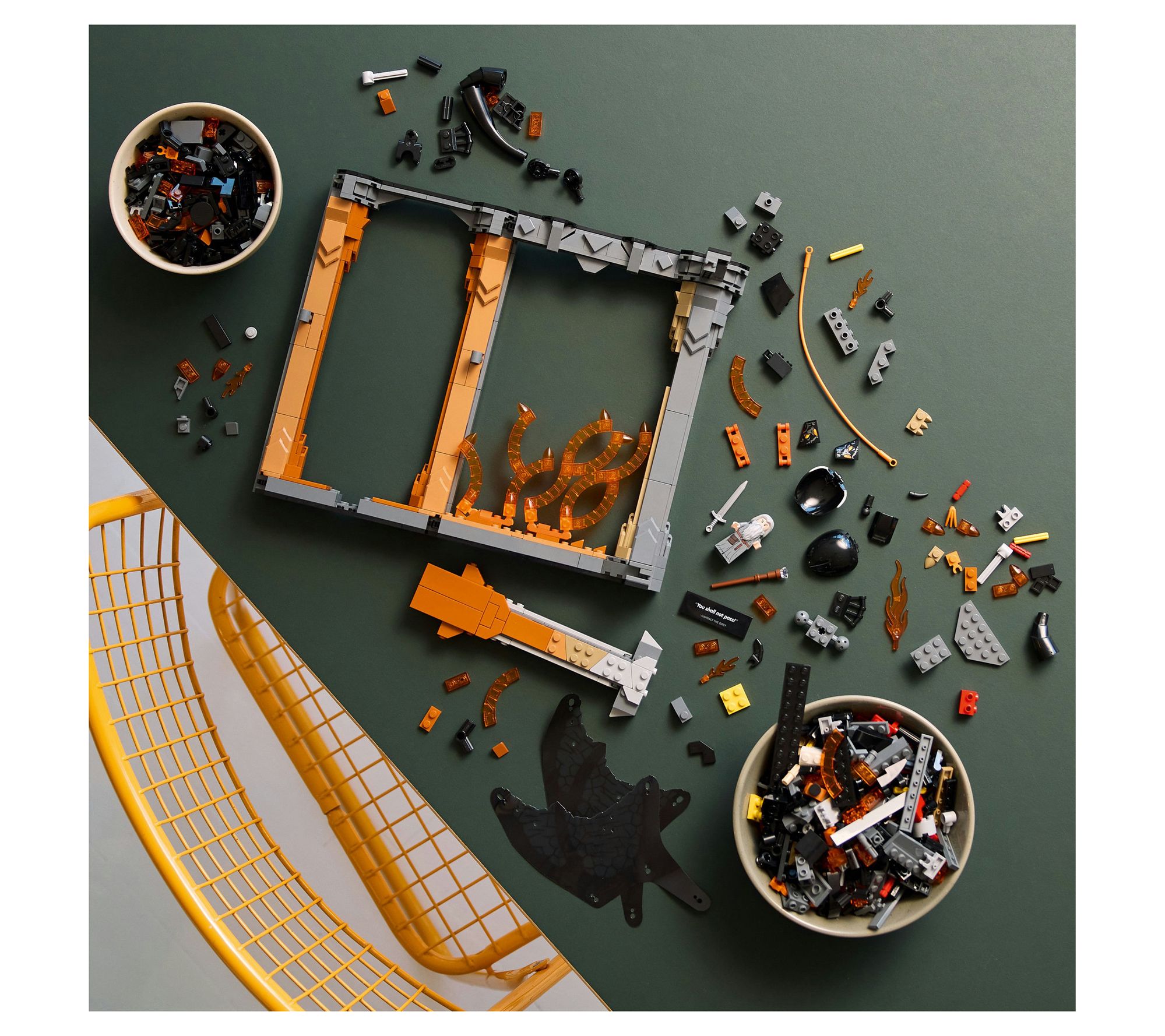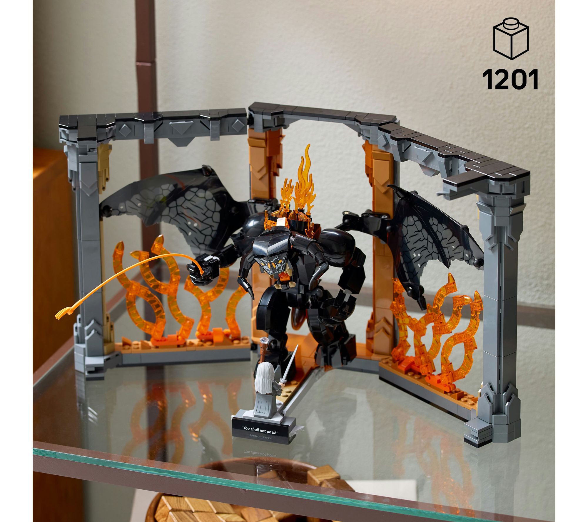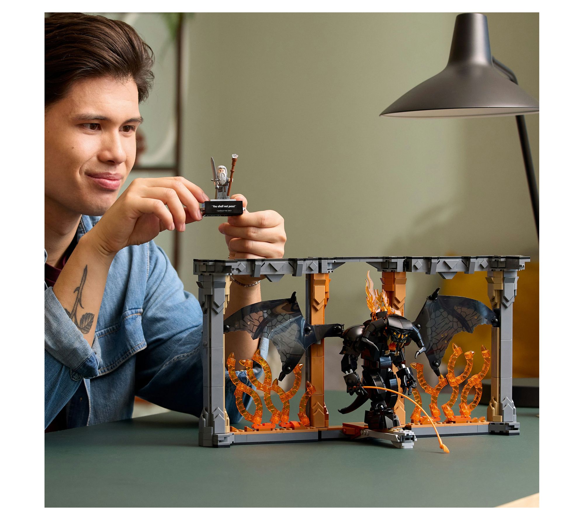 A legendary moment from The Lord of the Rings comes to life with this LEGO Blocks book nook set, inviting you to recreate Gandalf's epic face-off against the Balrog right in your home library. Place this striking display between your favorite novels for a conversation-starting glimpse into Middle-earth, or open it to reveal the Balrog's outstretched wings and fiery backdrop. From LEGO.