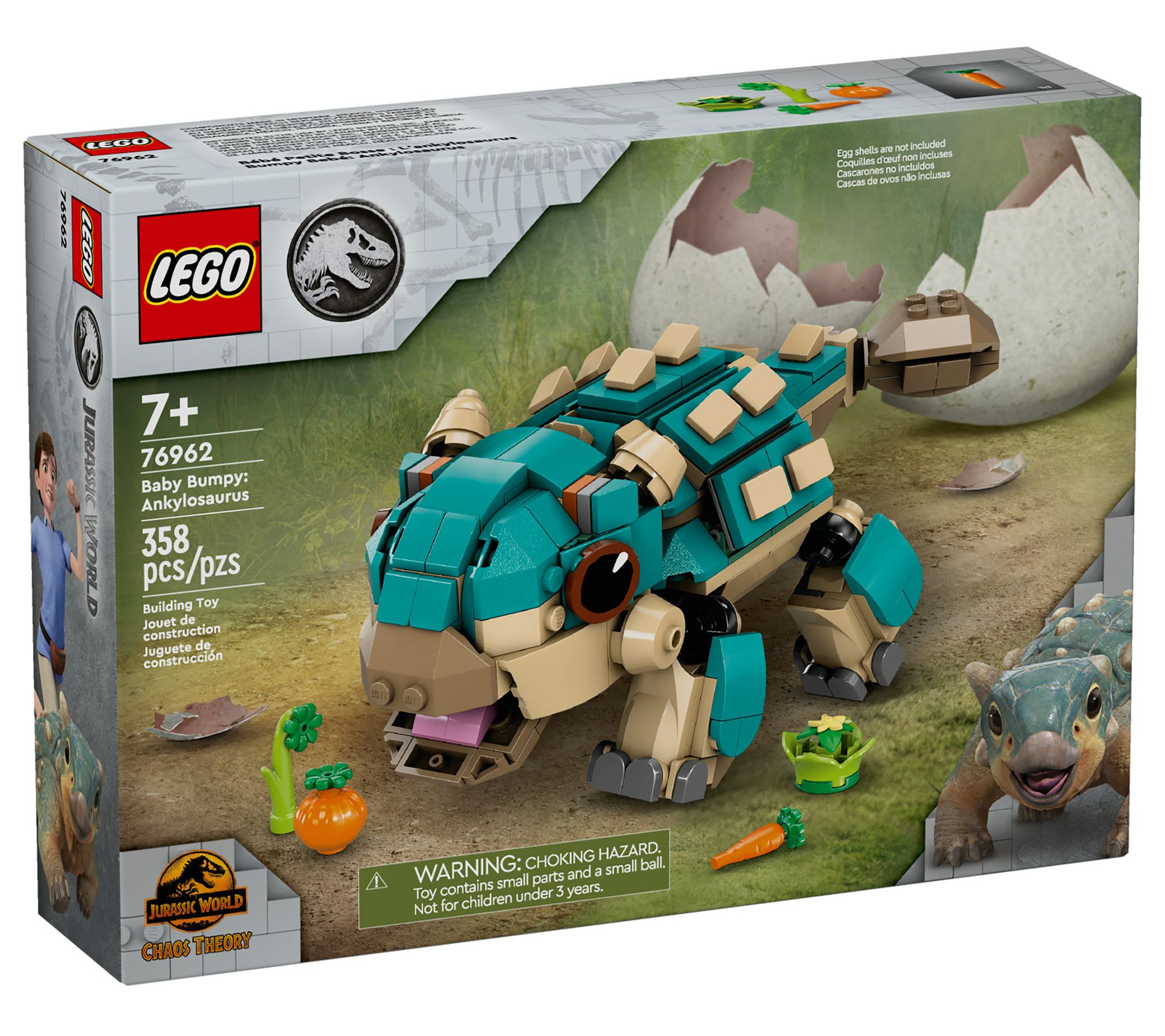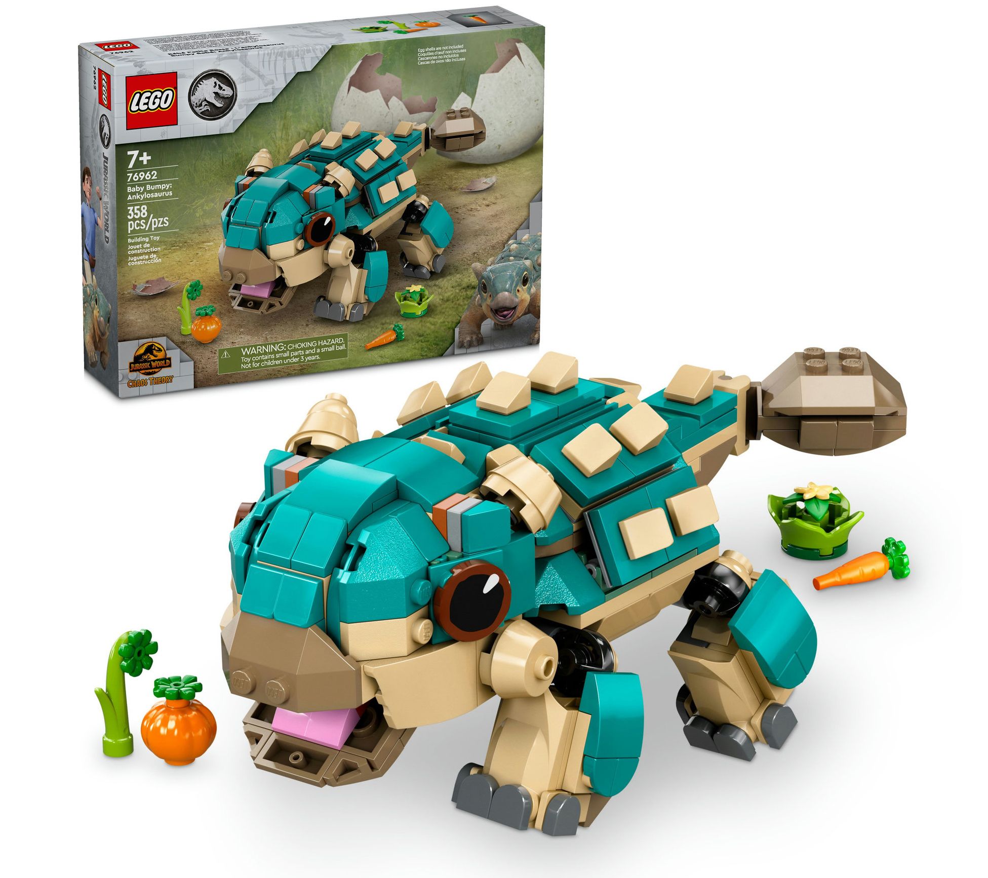 Build and care for your very own Baby Bumpy from the Jurassic World Camp Cretaceous TV show! This LEGO set lets you create an adorable Ankylosaurus toy with posable features, perfect for imaginative play and display. Watch as Baby Bumpy chases after snacks, guards your room, or simply enjoys her favorite veggies. From LEGO.