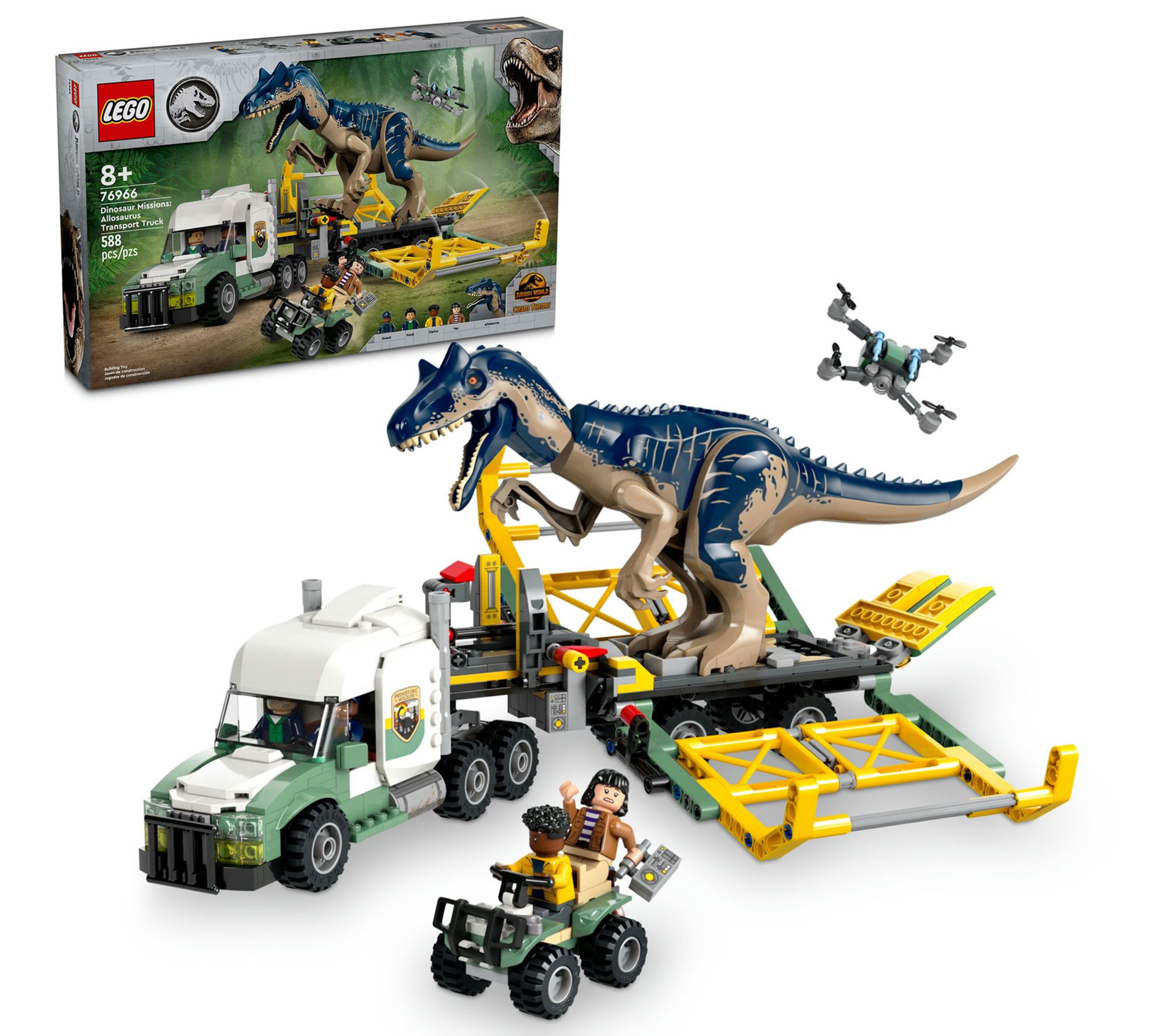 Treat your young dinosaur enthusiast to an adventure with the LEGO Jurassic World Dinosaur Missions Allosaurus Transport set. This detailed playset lets kids recapture the Allosaurus, load it into the transport cage, and embark on thrilling rescue missions with the help of Darius, Kenji, Yaz, and a guard/driver minifigure. From LEGO.