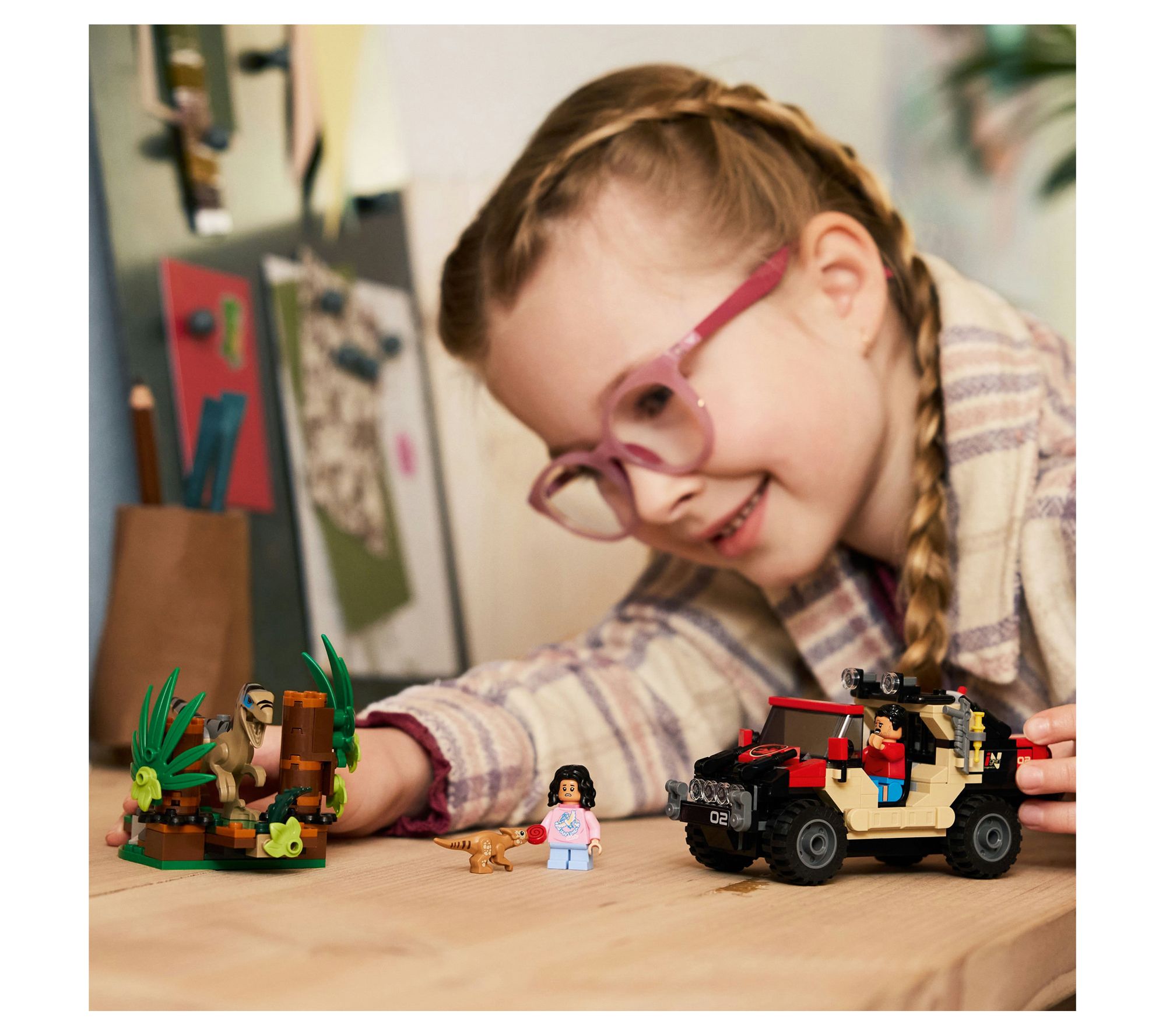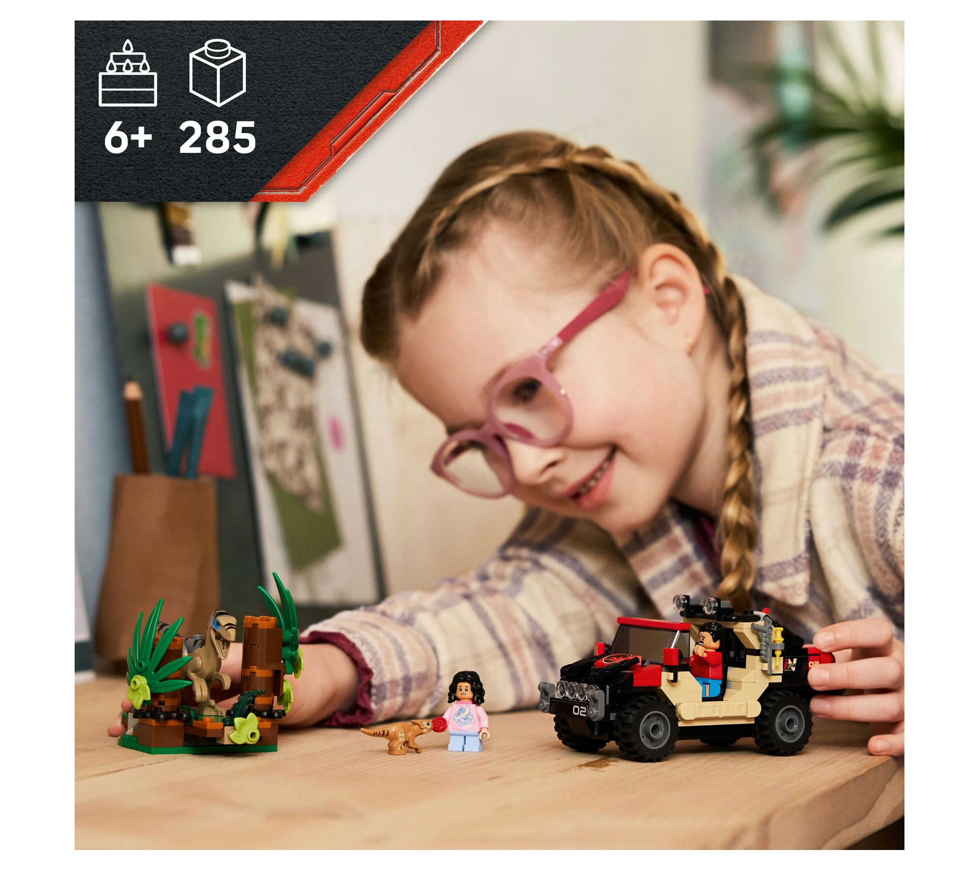 Dinosaur fans can dive into action as they race to build an off-road vehicle, dodge a hidden Velociraptor, and launch an epic escape with blocks in this Jurassic World set. Story-driven play features minifigures, dinosaurs, a tracking device, and clever build surprises, sparking creative adventures with every piece. From LEGO.